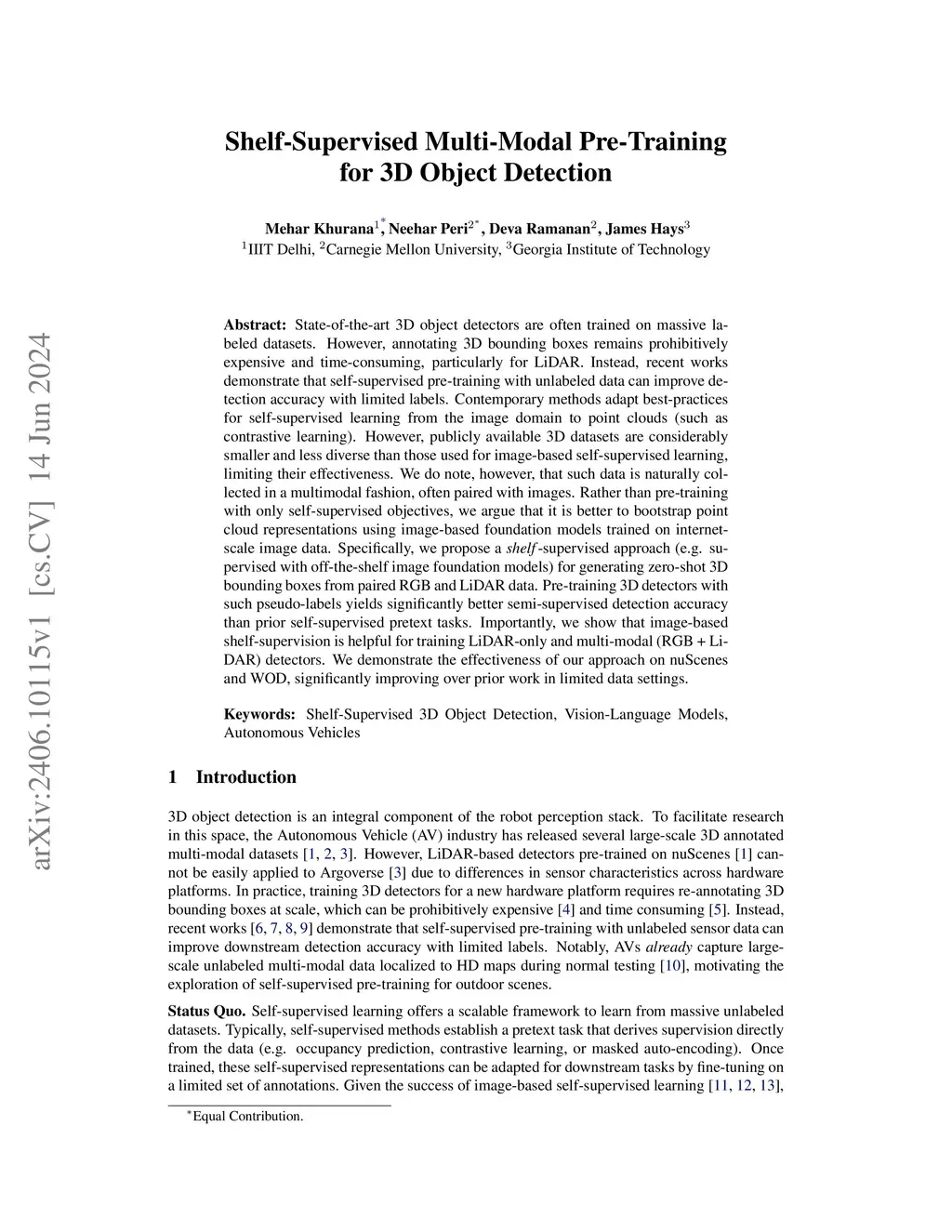 Shelf-Supervised Multi-Modal Pre-Training for 3D Object Detection