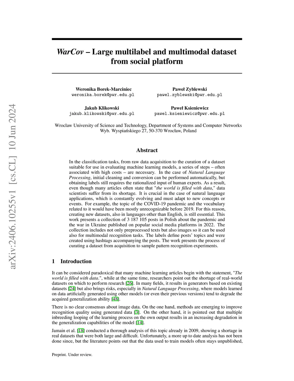 WarCov -- Large multilabel and multimodal dataset from social platform