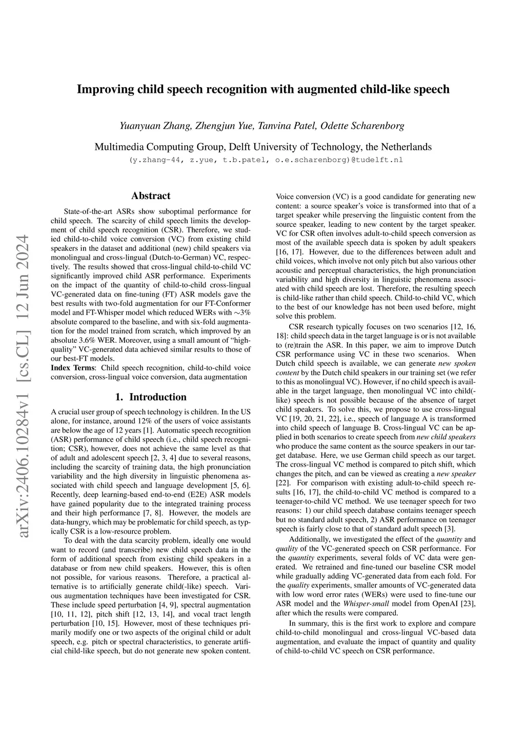 Improving child speech recognition with augmented child-like speech