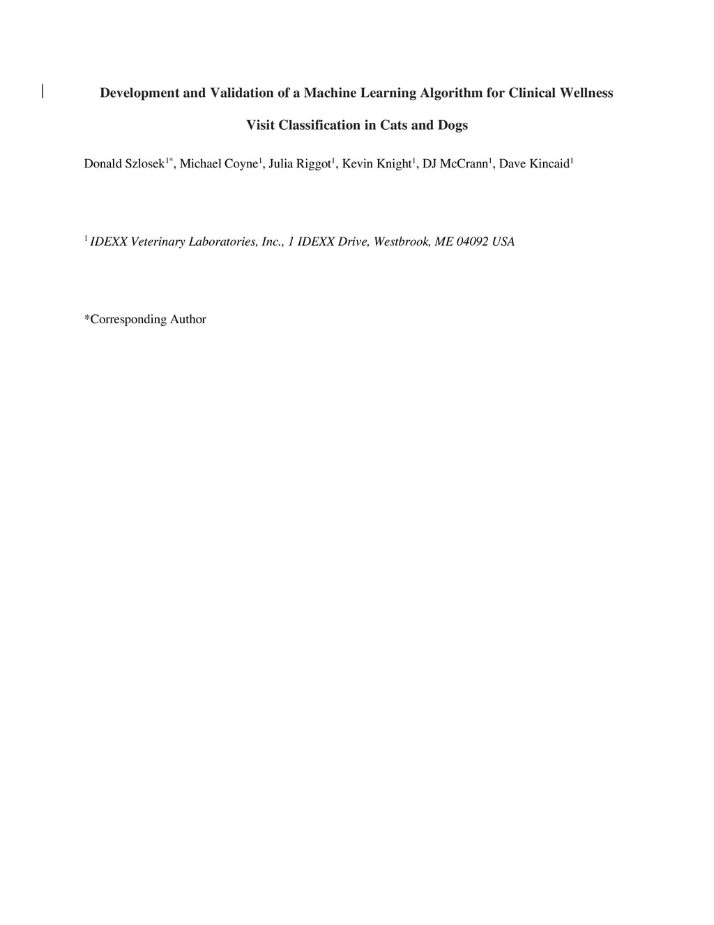 Early disease detection in veterinary care relies on identifying subclinical abnormalities in asymptomatic animals during wellness visits. This study introduces an algorithm designed to distinguish between wellness and other veterinary visits.The purpose of this study is to validate the use of a visit classification algorithm compared to manual classification of veterinary visits by three board-certified veterinarians. Using a dataset of 11,105 clinical visits from 2012 to 2017 involving 655 animals (85.3% canines and 14.7% felines) across 544 U.S. veterinary establishments, the model was trained using a Gradient Boosting Machine model. Three validators were tasked with classifying 400 visits, including both wellness and other types of visits, selected randomly from the same database used for initial algorithm training, aiming to maintain consistency and relevance between the training and application phases; visit classifications were subsequently categorized into "wellness" or "other" based on majority consensus among validators to assess the algorithm's performance in identifying wellness visits. The algorithm demonstrated a specificity of 0.94 (95% CI: 0.91 to 0.96), implying its accuracy in distinguishing non-wellness visits. The algorithm had a sensitivity of 0.86 (95% CI: 0.80 to 0.92), indicating its ability to correctly identify wellness visits as compared to the annotations provided by veterinary experts. The balanced accuracy, calculated as 0.90 (95% CI: 0.87 to 0.93), further confirms the algorithm's overall effectiveness. The algorithm exhibits strong specificity and sensitivity, ensuring accurate identification of a high proportion of wellness visits. Overall, this algorithm holds promise for advancing research on preventive care's role in subclinical disease identification, but prospective studies are needed for validation.