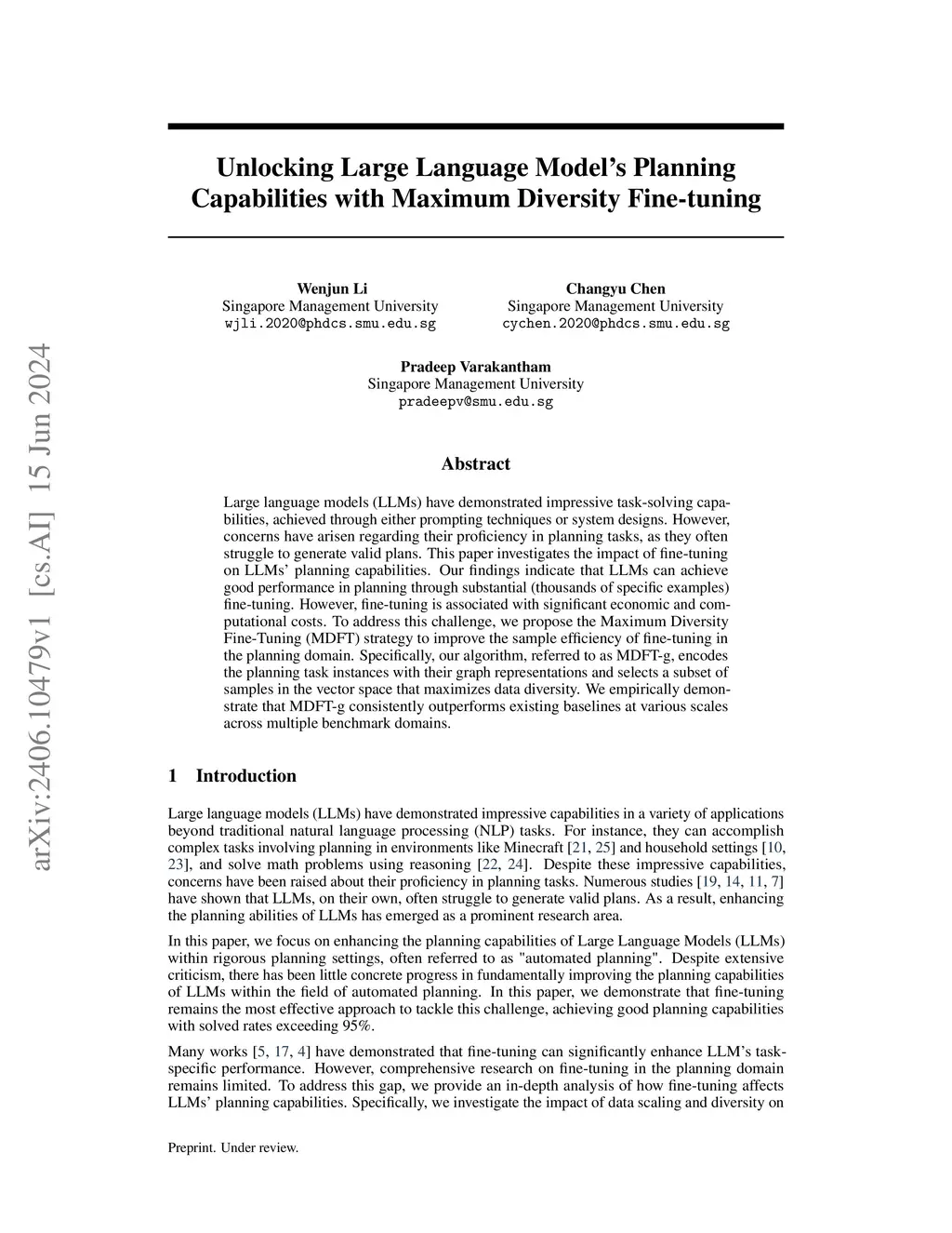 Unlocking Large Language Model's Planning Capabilities with Maximum Diversity Fine-tuning