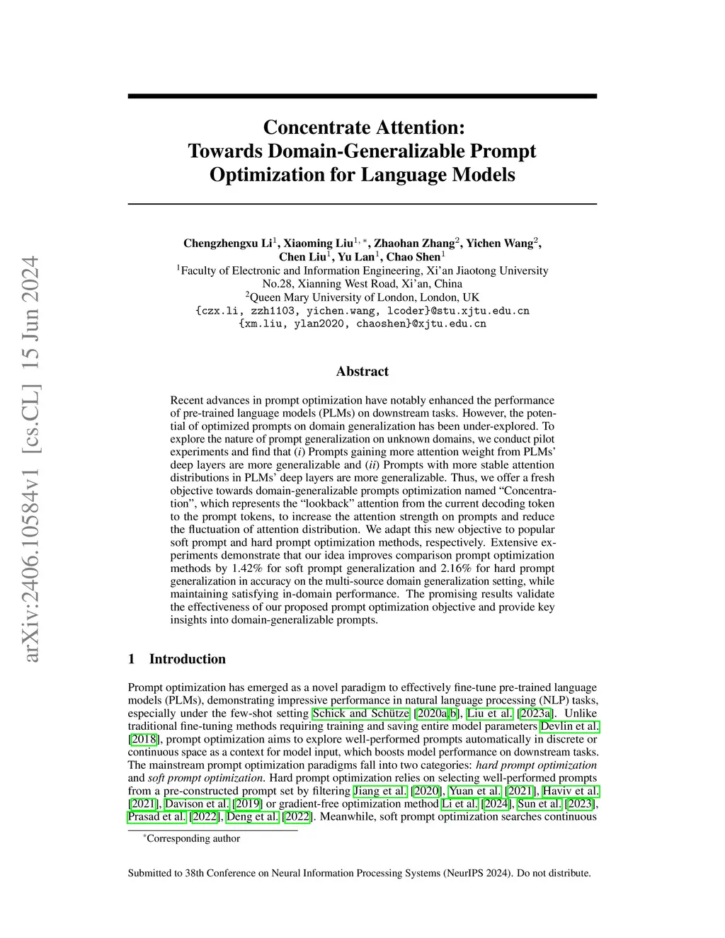 Concentrate Attention: Towards Domain-Generalizable Prompt Optimization