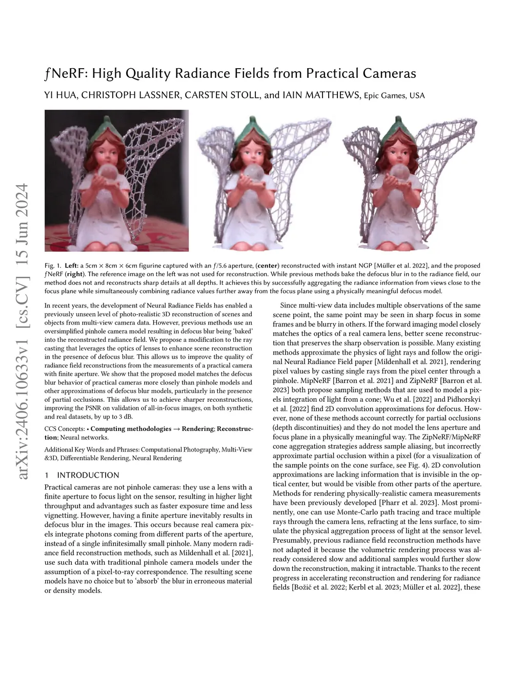 fNeRF: High Quality Radiance Fields from Practical Cameras
