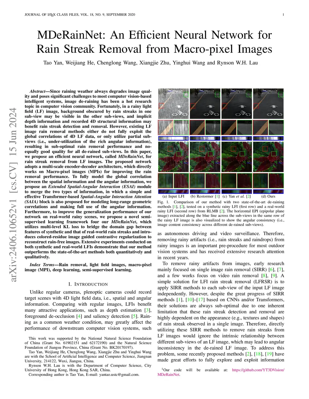 MDeRainNet: An Efficient Macro-pixel Image Rain Removal Network