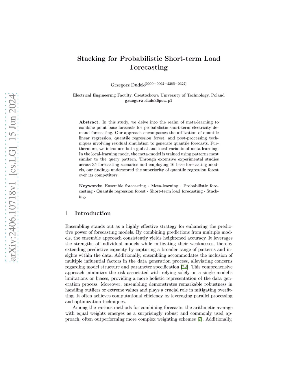 Stacking for Probabilistic Short-term Load Forecasting