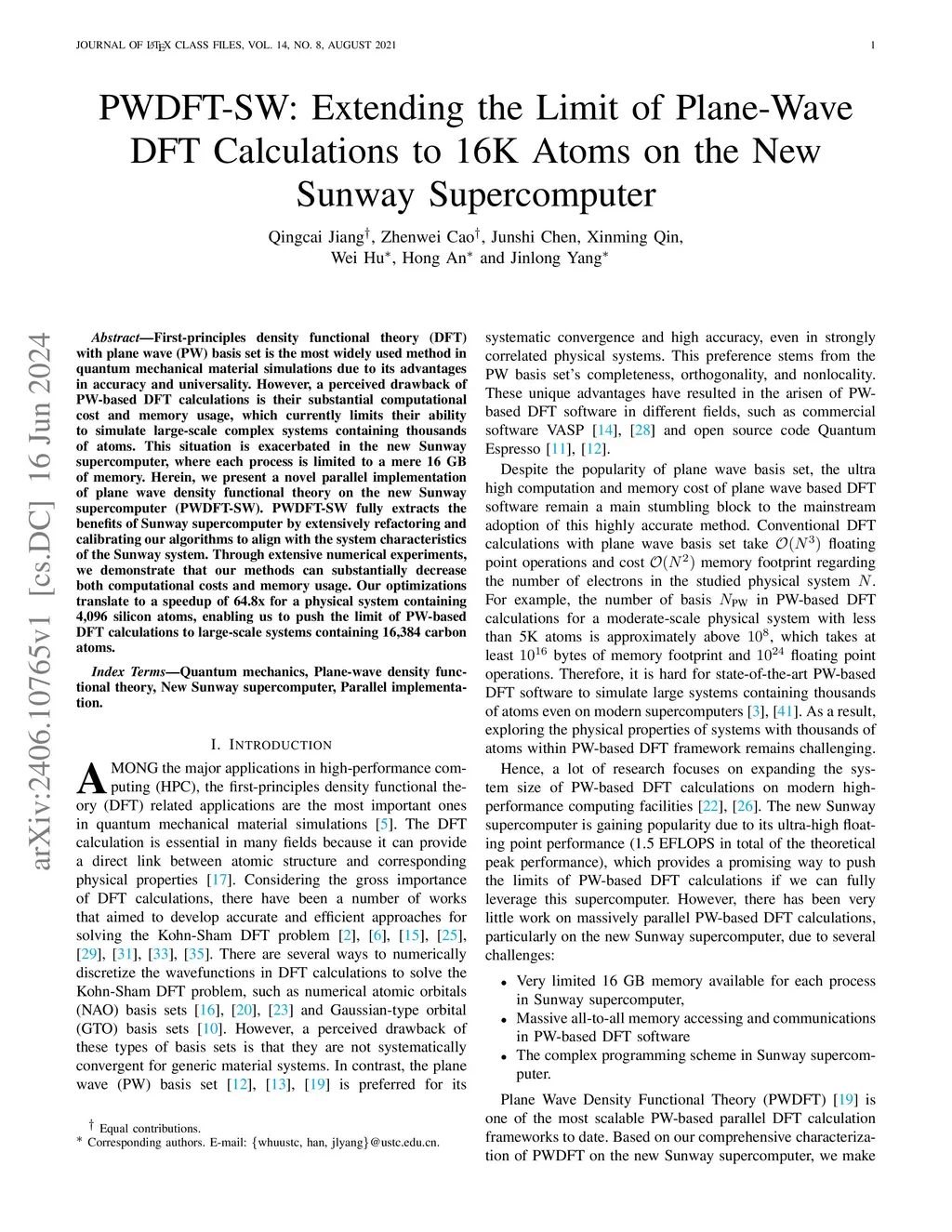 PWDFT-SW: Extending the Limit of Plane-Wave DFT Calculations to 16K