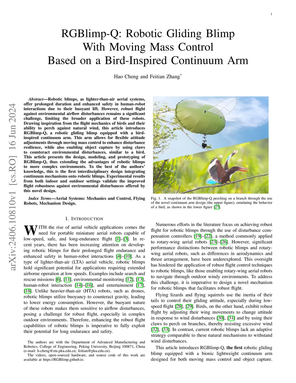 RGBlimp-Q: Robotic Gliding Blimp With Moving Mass Control Based on a Bird-Inspired Continuum Arm