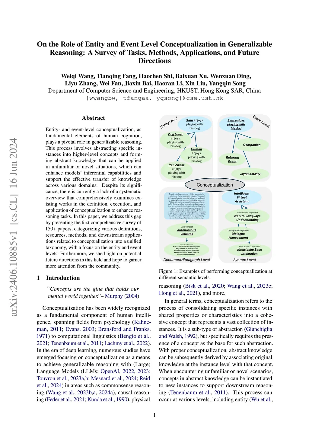 On the Role of Entity and Event Level Conceptualization in Generalizable Reasoning: A Survey of Tasks, Methods, Applications, and Future Directions