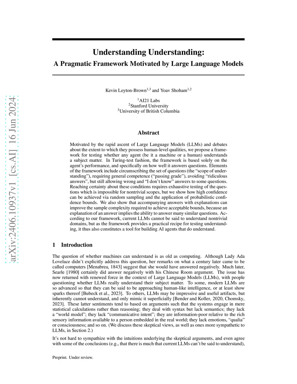 Understanding Understanding: A Pragmatic Framework Motivated by Large