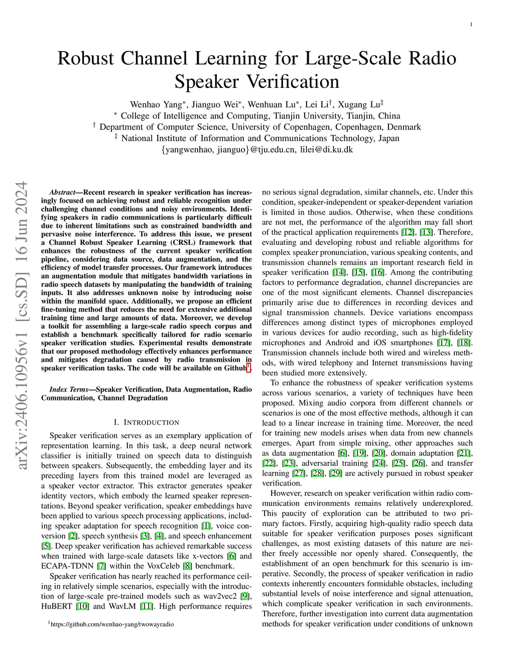 Recent research in speaker verification has increasingly focused on achieving robust and reliable recognition under challenging channel conditions and noisy environments. Identifying speakers in radio communications is particularly difficult due to inherent limitations such as constrained bandwidth and pervasive noise interference. To address this issue, we present a Channel Robust Speaker Learning (CRSL) framework that enhances the robustness of the current speaker verification pipeline, considering data source, data augmentation, and the efficiency of model transfer processes. Our framework introduces an augmentation module that mitigates bandwidth variations in radio speech datasets by manipulating the bandwidth of training inputs. It also addresses unknown noise by introducing noise within the manifold space. Additionally, we propose an efficient fine-tuning method that reduces the need for extensive additional training time and large amounts of data. Moreover, we develop a toolkit for assembling a large-scale radio speech corpus and establish a benchmark specifically tailored for radio scenario speaker verification studies. Experimental results demonstrate that our proposed methodology effectively enhances performance and mitigates degradation caused by radio transmission in speaker verification tasks. The code will be available on Github.
