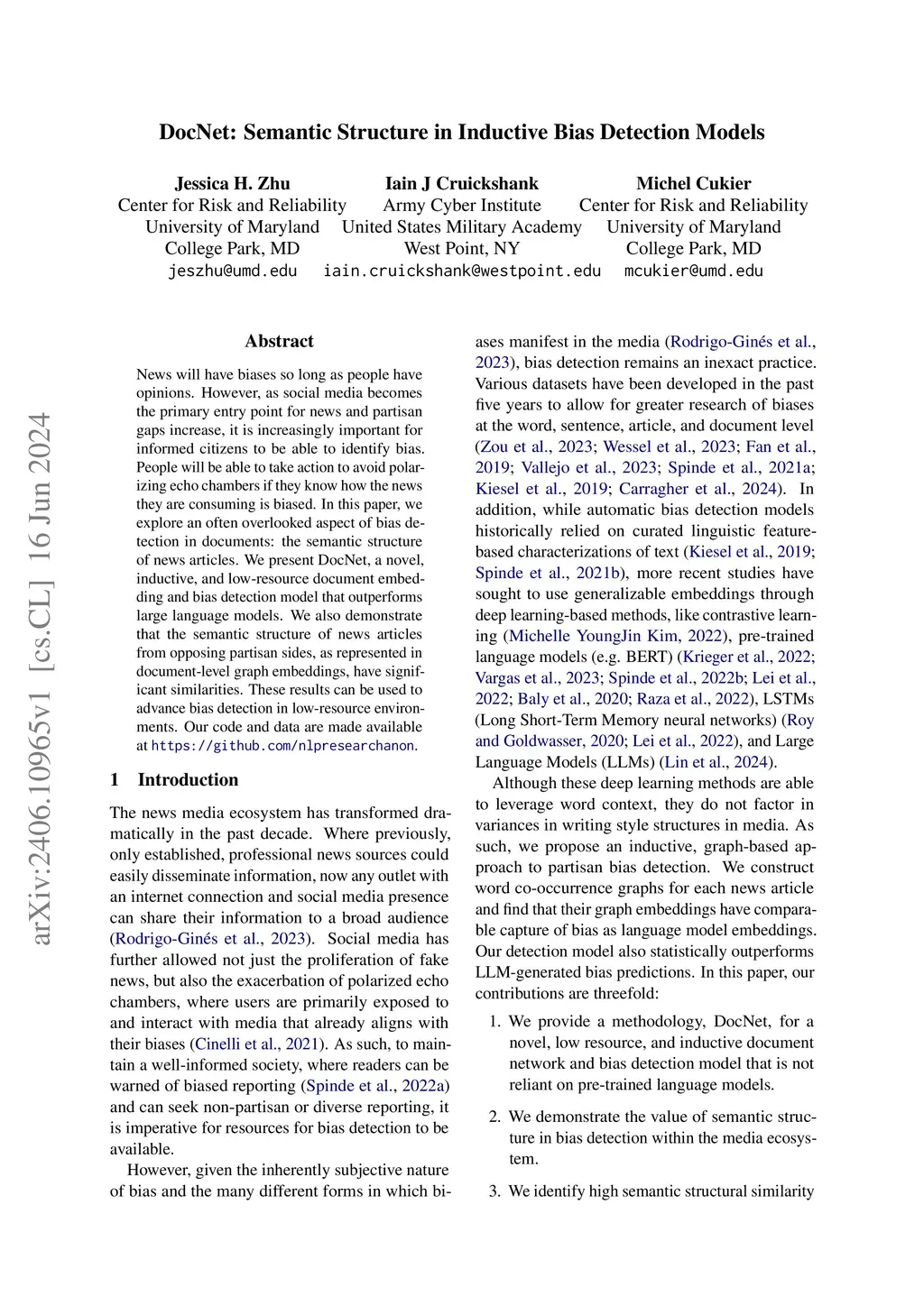 DocNet: Semantic Structure in Inductive Bias Detection Models