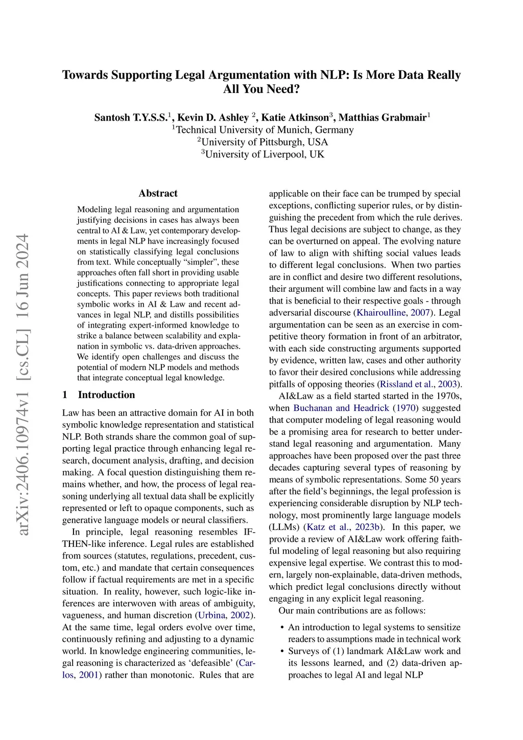 Modeling legal reasoning and argumentation justifying decisions in cases has always been central to AI & Law, yet contemporary developments in legal NLP have increasingly focused on statistically classifying legal conclusions from text. While conceptually simpler, these approaches often fall short in providing usable justifications connecting to appropriate legal concepts. This paper reviews both traditional symbolic works in AI & Law and recent advances in legal NLP, and distills possibilities of integrating expert-informed knowledge to strike a balance between scalability and explanation in symbolic vs. data-driven approaches. We identify open challenges and discuss the potential of modern NLP models and methods that integrate