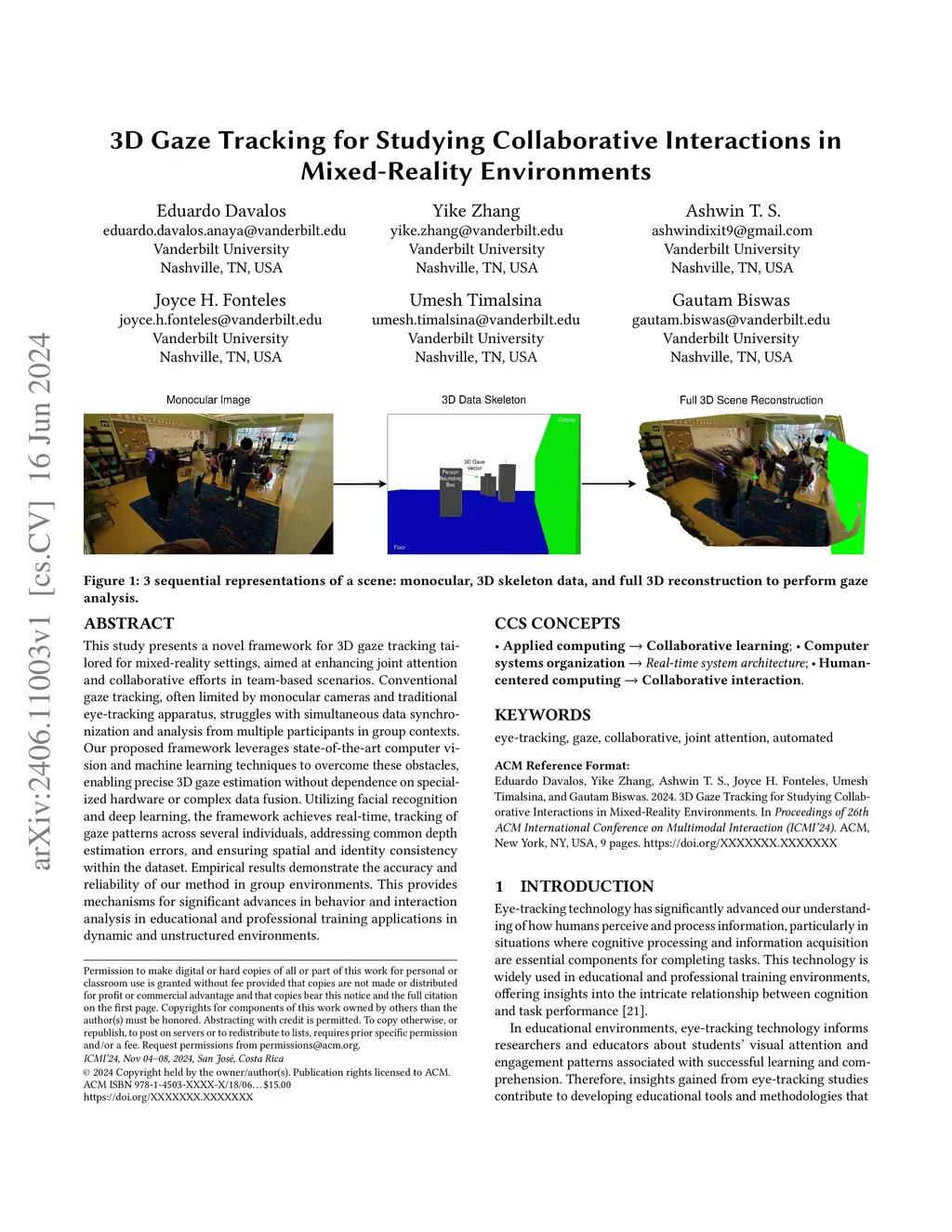 This study presents a novel framework for 3D gaze tracking tailored for mixed-reality settings, aimed at enhancing joint attention and collaborative efforts in team-based scenarios. Conventional gaze tracking, often limited by monocular cameras and traditional eye-tracking apparatus, struggles with simultaneous data synchronization and analysis from multiple participants in group contexts. Our proposed framework leverages state-of-the-art computer vision and machine learning techniques to overcome these obstacles, enabling precise 3D gaze estimation without dependence on specialized hardware or complex data fusion. Utilizing facial recognition and deep learning, the framework achieves real-time, tracking of gaze patterns across several individuals, addressing common depth estimation errors, and ensuring spatial and identity consistency within the dataset. Empirical results demonstrate the accuracy and reliability of our method in group environments. This provides mechanisms for significant advances in behavior and interaction analysis in educational and professional training applications in dynamic and unstructured environments.