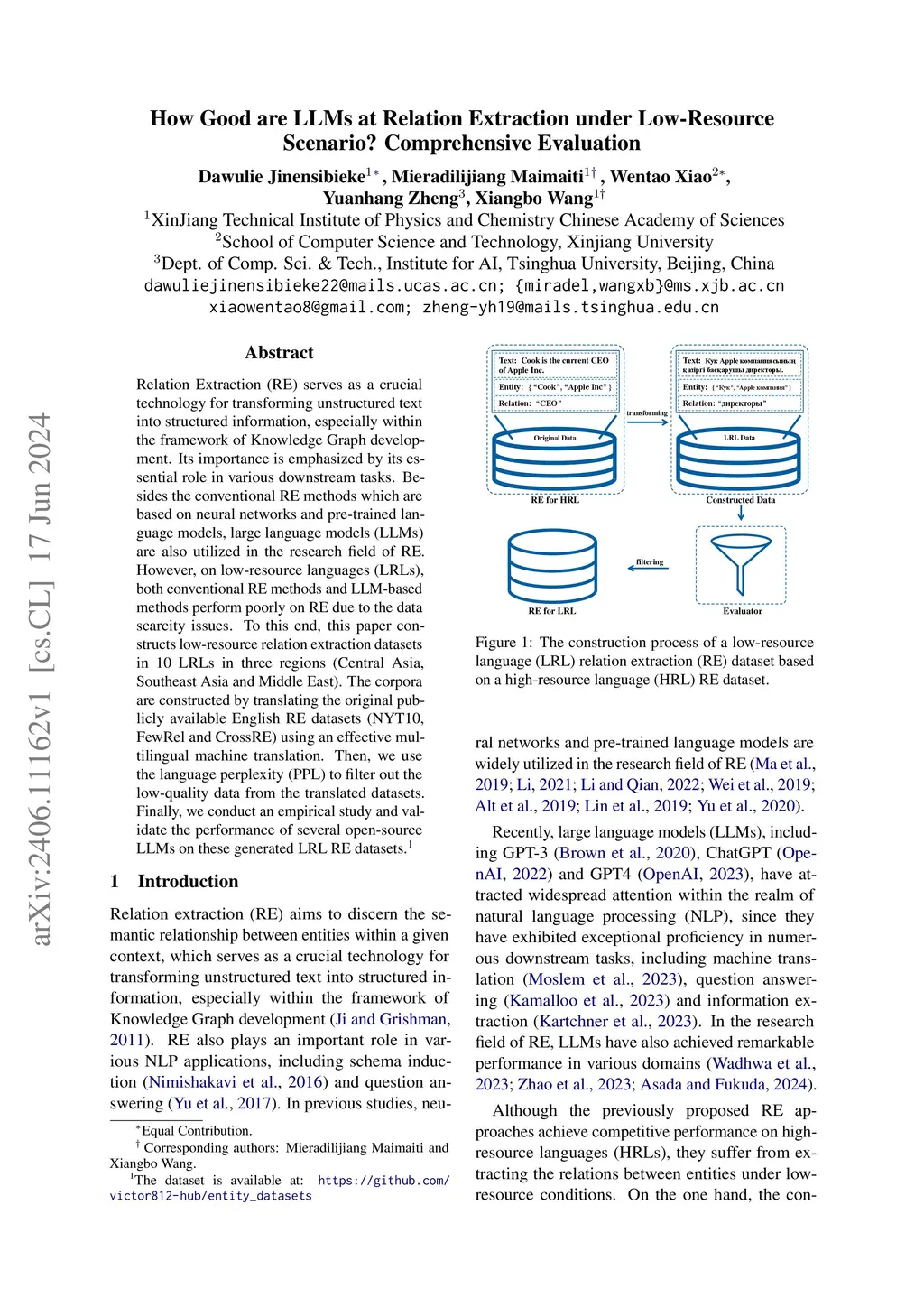 Relation Extraction (RE) serves as a crucial technology for transforming unstructured text into structured information, especially within the framework of Knowledge Graph development. Its importance is emphasized by its essential role in various downstream tasks. Besides the conventional RE methods which are based on neural networks and pre-trained language models, large language models (LLMs) are also utilized in the research field of RE. However, on low-resource languages (LRLs), both conventional RE methods and LLM-based methods perform poorly on RE due to the data scarcity issues. To this end, this paper constructs low-resource relation extraction datasets in 10 LRLs in three regions (Central Asia, Southeast Asia and Middle East). The corpora are constructed by translating the original publicly available English RE datasets (NYT10, FewRel and CrossRE) using an effective multilingual machine translation. Then, we use the language perplexity (PPL) to filter out the low-quality data from the translated datasets. Finally, we conduct an empirical study and validate the performance of several open-source LLMs on these generated LRL RE datasets.