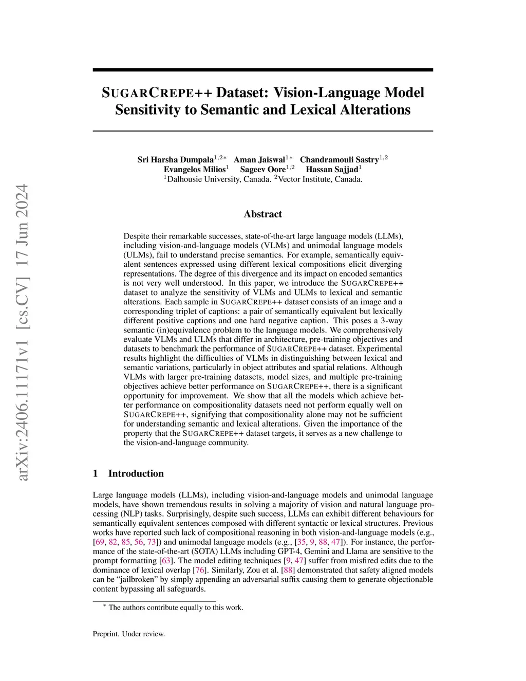 SUGARCREPE++ Dataset: Vision-Language Model Sensitivity to Semantic and