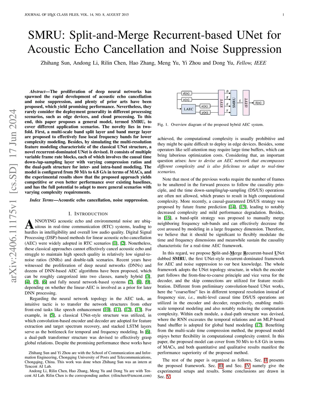 SMRU: Split-and-Merge Recurrent-based UNet for Acoustic Echo Cancellation and Noise Suppression