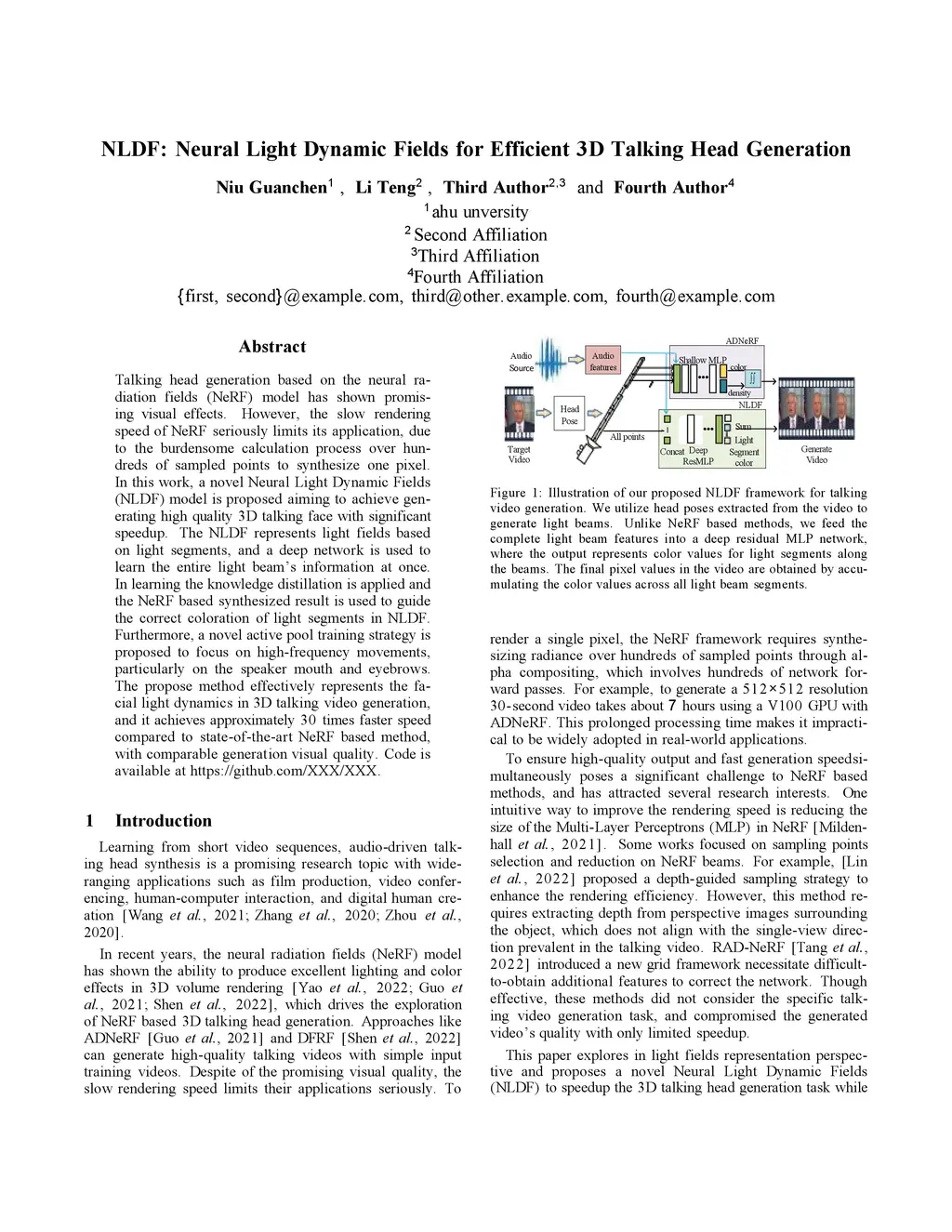 NLDF: Neural Light Dynamic Fields for Efficient 3D Talking Head