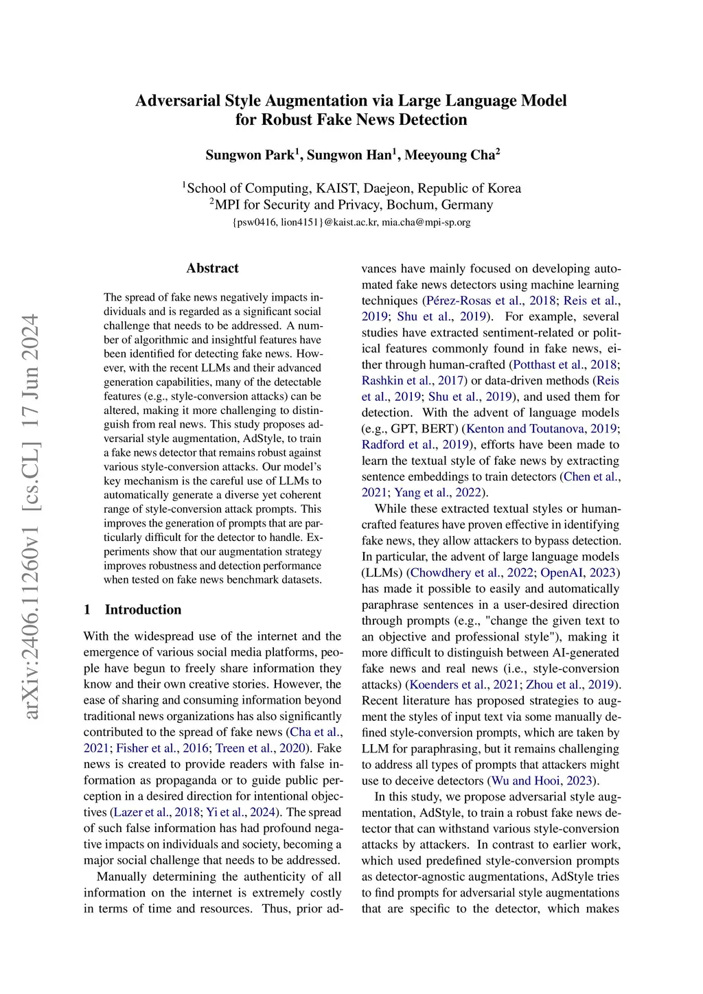 Adversarial Style Augmentation via Large Language Model for Robust Fake News Detection