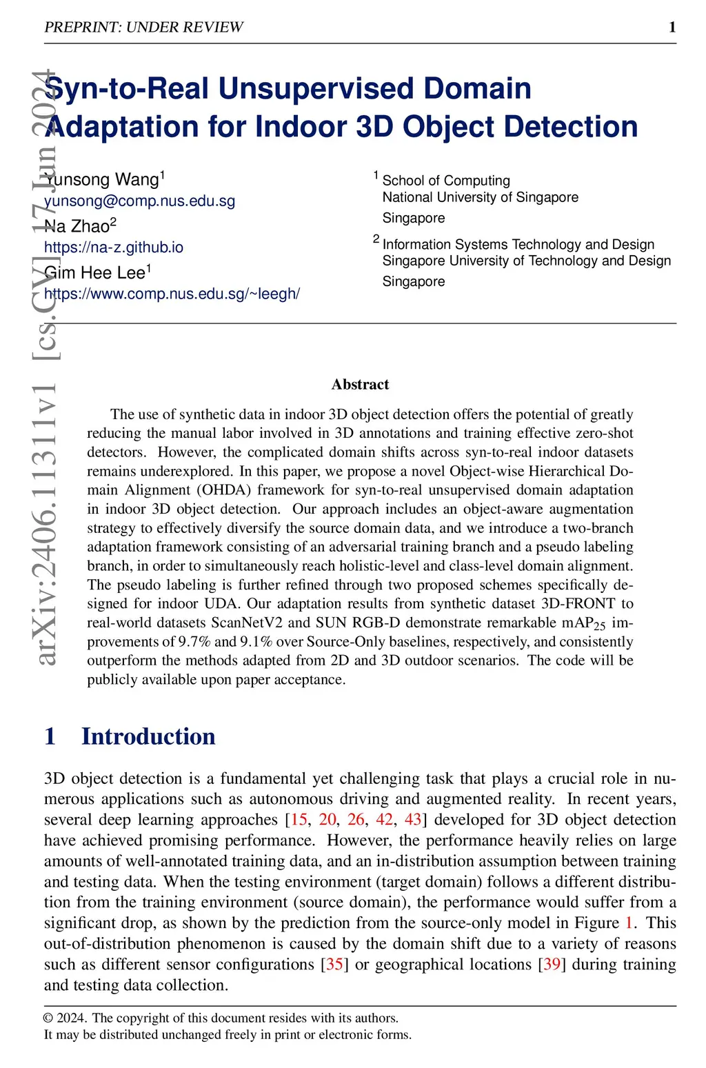 Syn-to-Real Unsupervised Domain Adaptation for Indoor 3D Object