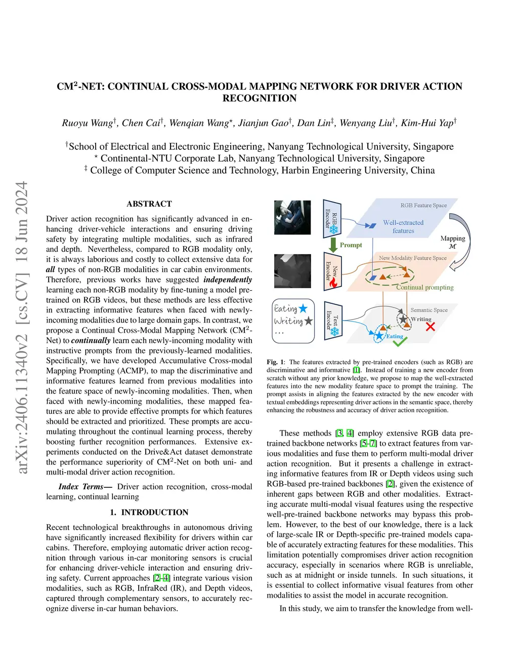 CM2-Net: Continual Cross-Modal Mapping Network for Driver Action
