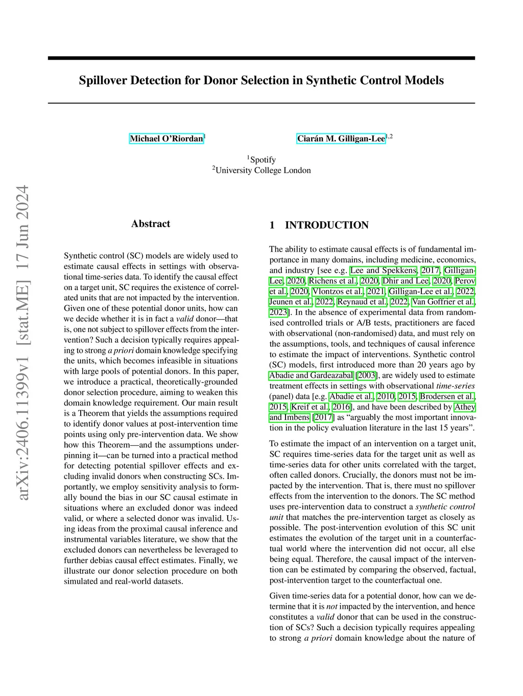 Synthetic control (SC) models are widely used to estimate causal effects in settings with observational time-series data. To identify the causal effect on a target unit, SC requires the existence of correlated units that are not impacted by the intervention. Given one of these potential donor units, how can we decide whether it is in fact a valid donor - that is, one not subject to spillover effects from the intervention? Such a decision typically requires appealing to strong a priori domain knowledge specifying the units, which becomes infeasible in situations with large pools of potential donors. In this paper, we introduce a practical, theoretically-grounded donor selection procedure, aiming to weaken this domain knowledge requirement. Our main result is a Theorem that yields the assumptions required to identify donor values at post-intervention time points using only pre-intervention data. We show how this Theorem - and the assumptions underpinning it - can be turned into a practical method for detecting potential spillover effects and excluding invalid donors when constructing SCs. Importantly, we employ sensitivity analysis to formally bound the bias in our SC causal estimate in situations where an excluded donor was indeed valid, or where a selected donor was invalid. Using ideas from the proximal causal inference and instrumental variables literature, we show that the excluded donors can nevertheless be leveraged to further debias causal effect estimates. Finally, we illustrate our donor selection procedure on both simulated and real-world datasets.