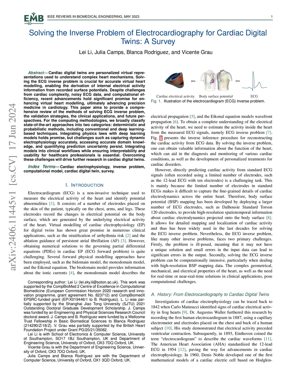 Cardiac digital twins are personalized virtual representations used to understand complex heart mechanisms. Solving the ECG inverse problem is crucial for accurate virtual heart modelling, enabling the derivation of internal electrical activity information from recorded surface potentials. Despite challenges from cardiac complexity, noisy ECG data, and computational efficiency, recent advancements hold significant promise for enhancing virtual heart modelling, ultimately advancing precision medicine in cardiology. This paper aims to provide a comprehensive review of the methods of solving ECG inverse problem, the validation strategies, the clinical applications, and future perspectives. For the computing methodologies, we broadly classify state-of-the-art approaches into two categories: deterministic and probabilistic methods, including conventional and deep learning-based techniques. Integrating physics laws with deep learning models holds promise, but challenges such as capturing dynamic electrophysiology accurately, accessing accurate domain knowledge, and quantifying prediction uncertainty persist. Integrating models into clinical workflows while ensuring interpretability and usability for healthcare professionals is essential. Overcoming these challenges will drive further research in cardiac digital twins.