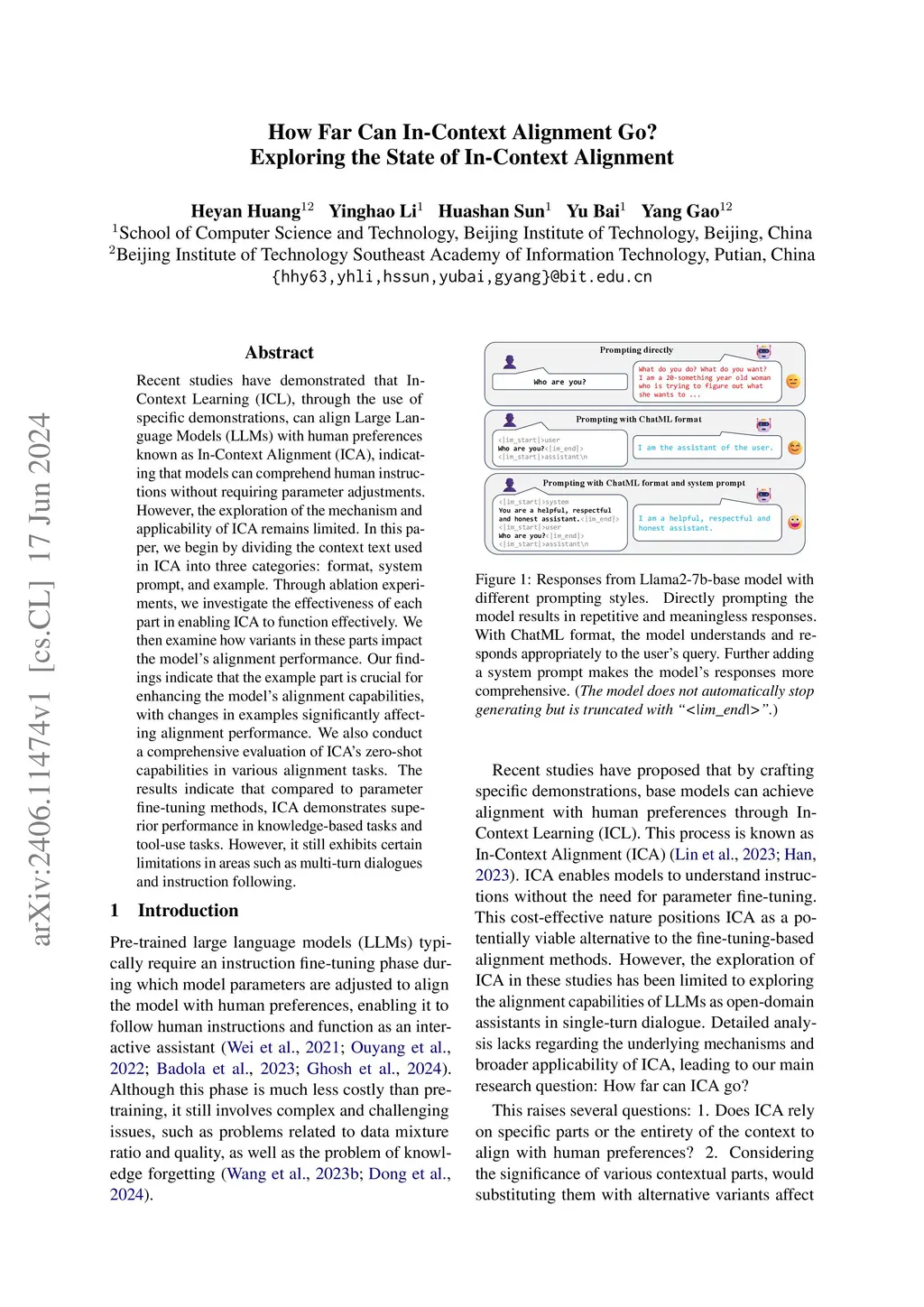 Recent studies have demonstrated that In-Context Learning (ICL), through the use of specific demonstrations, can align Large Language Models (LLMs) with human preferences known as In-Context Alignment (ICA), indicating that models can comprehend human instructions without requiring parameter adjustments. However, the exploration of the mechanism and applicability of ICA remains limited. In this paper, we begin by dividing the context text used in ICA into three categories: format, system prompt, and example. Through ablation experiments, we investigate the effectiveness of each part in enabling ICA to function effectively. We then examine how variants in these parts impact the model's alignment performance. Our findings indicate that the example part is crucial for enhancing the model's alignment capabilities, with changes in examples significantly affecting alignment performance. We also conduct a comprehensive evaluation of ICA's zero-shot capabilities in various alignment tasks. The results indicate that compared to parameter fine-tuning methods, ICA demonstrates superior performance in knowledge-based tasks and tool-use tasks. However, it still exhibits certain limitations in areas such as multi-turn dialogues and instruction following.