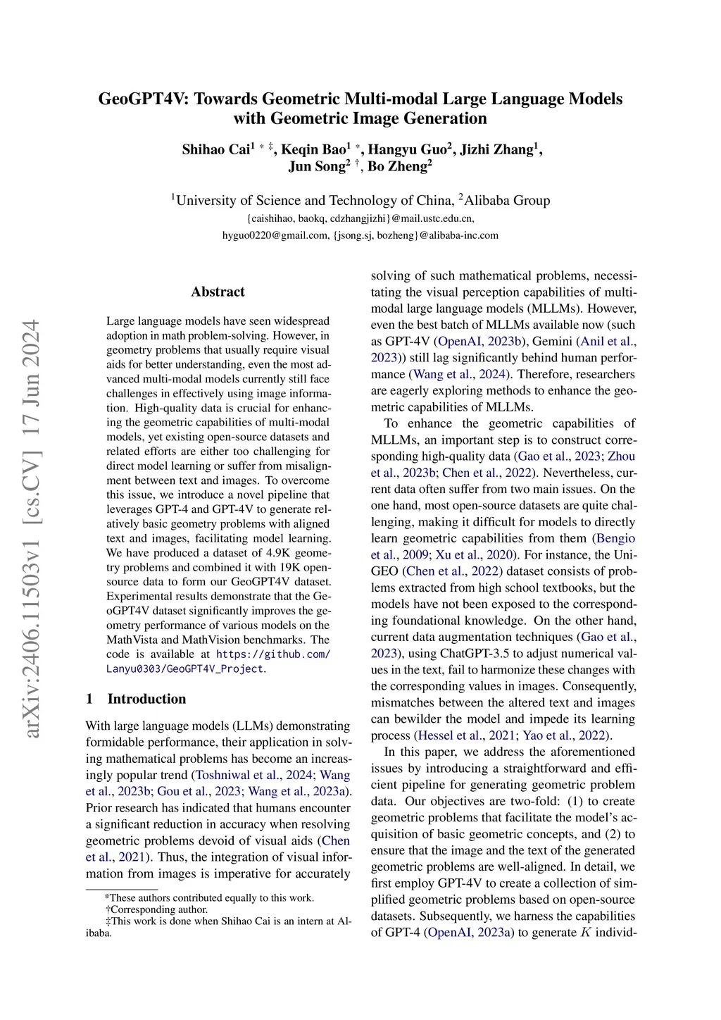 GeoGPT4V: Towards Geometric Multi-modal Large Language Models with