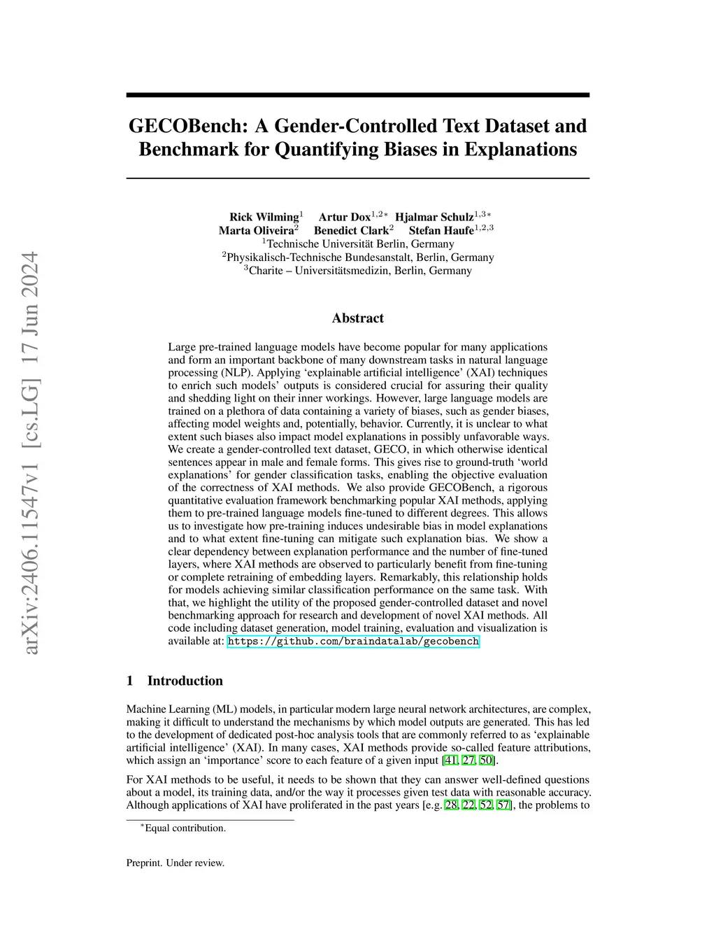 GECOBench: A Gender-Controlled Text Dataset and Benchmark for Quantifying Biases in Explanations