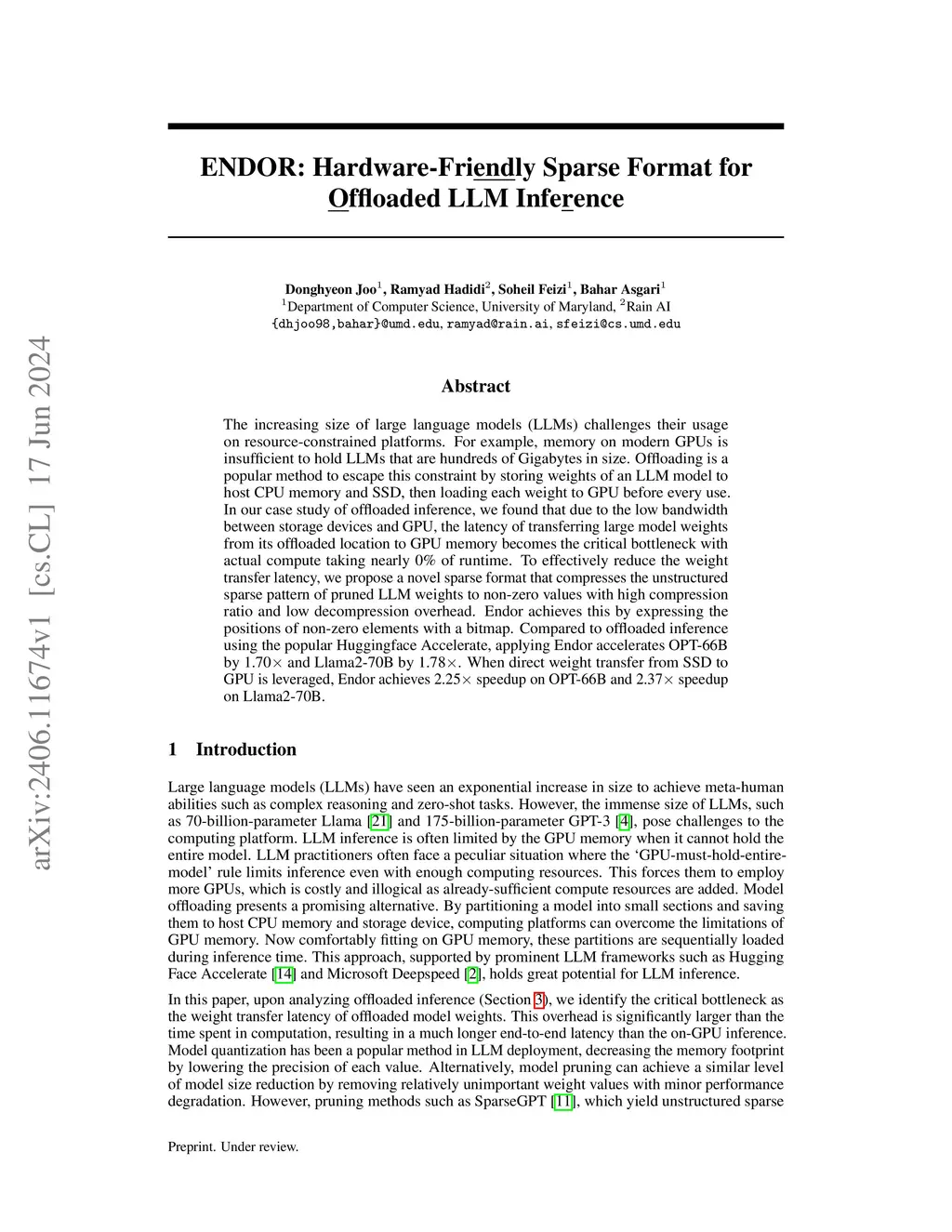 Endor: Hardware-Friendly Sparse Format for Offloaded LLM Inference