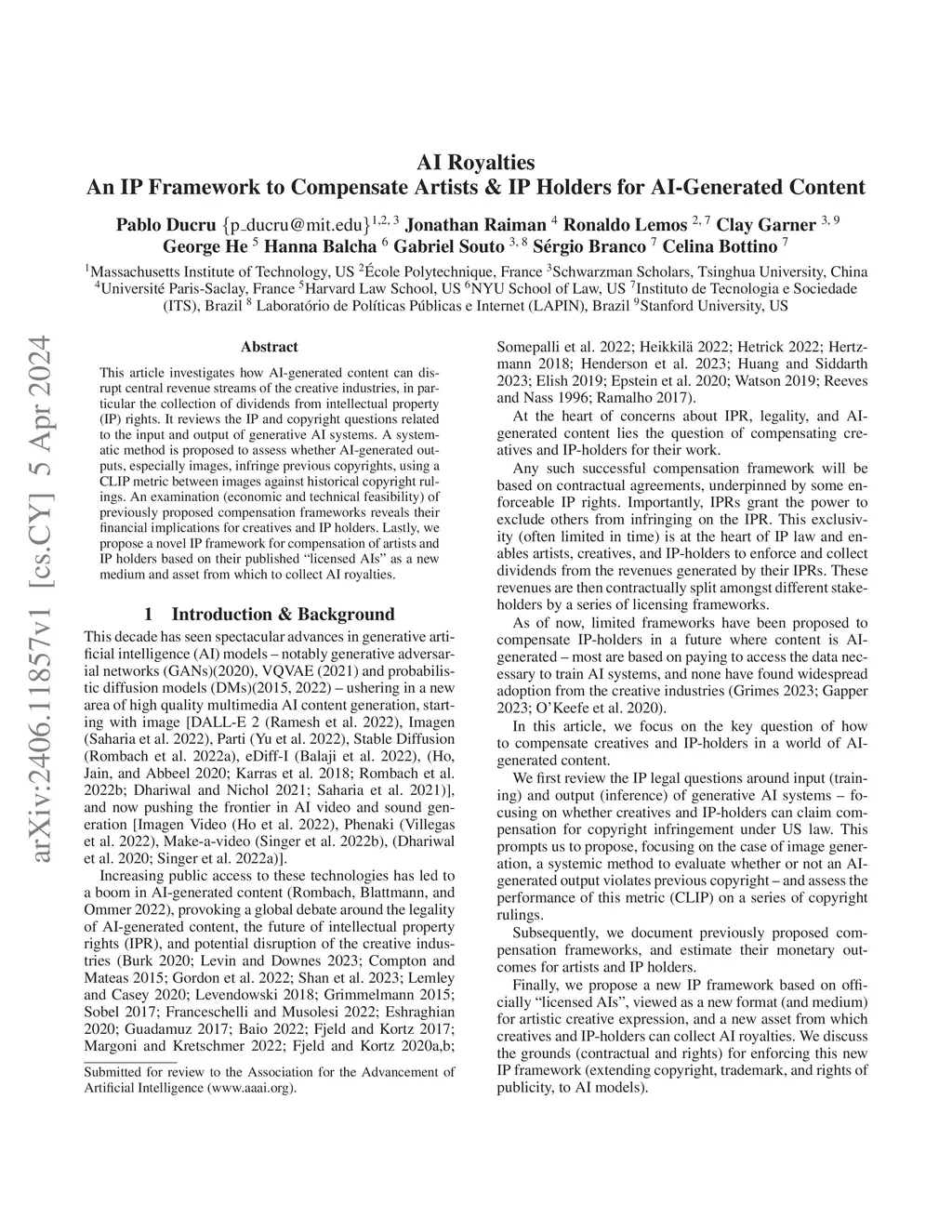 This article investigates how AI-generated content can disrupt central revenue streams of the creative industries, in particular the collection of dividends from intellectual property (IP) rights. It reviews the IP and copyright questions related to the input and output of generative AI systems. A systematic method is proposed to assess whether AI-generated outputs, especially images, infringe previous copyrights, using a similarity metric (CLIP) between images against historical copyright rulings. An examination (economic and technical feasibility) of previously proposed compensation frameworks reveals their financial implications for creatives and IP holders. Lastly, we propose a novel IP framework for compensation of artists and IP holders based on their published "licensed AIs" as a new medium and asset from which to collect AI royalties.