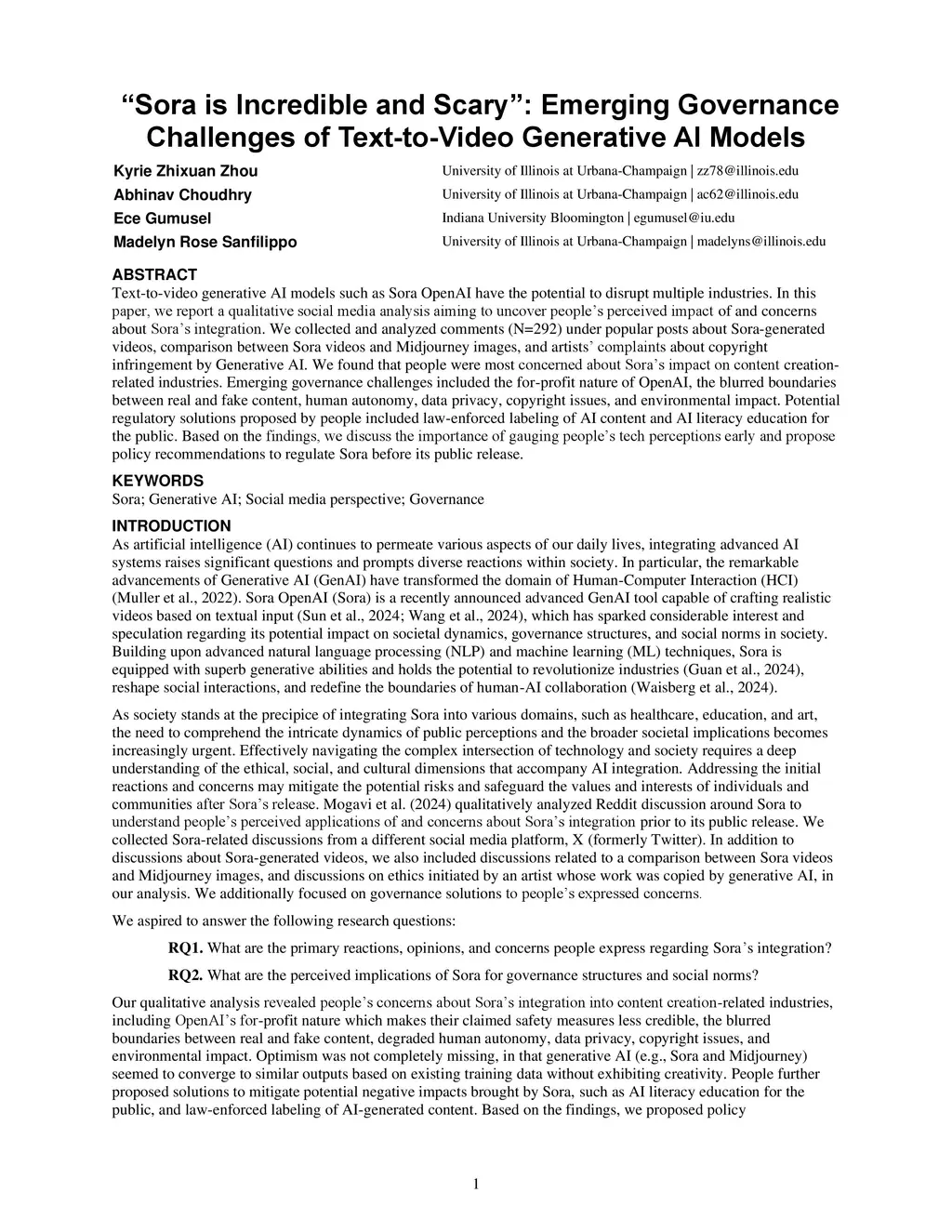 "Sora is Incredible and Scary": Emerging Governance Challenges of