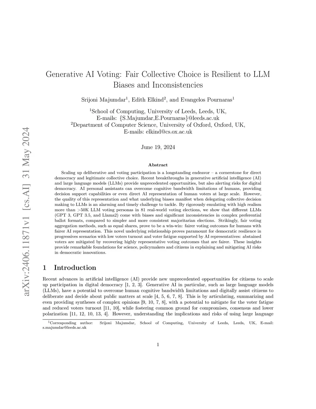 Generative AI voting: fair collective choice is resilient to LLM biases and inconsistencies