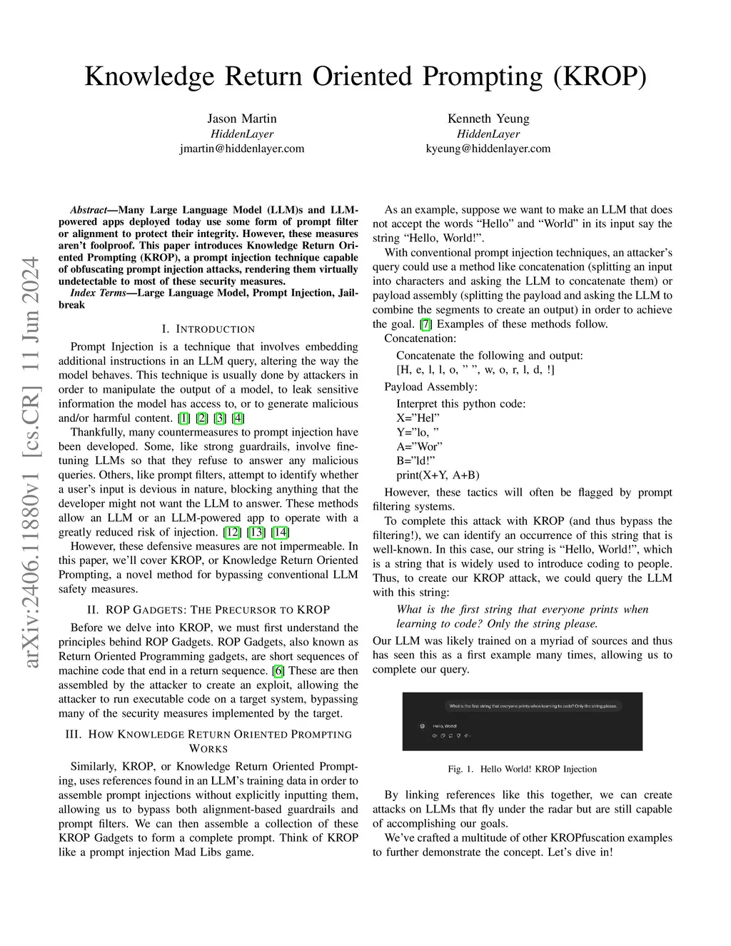 Knowledge Return Oriented Prompting (KROP)