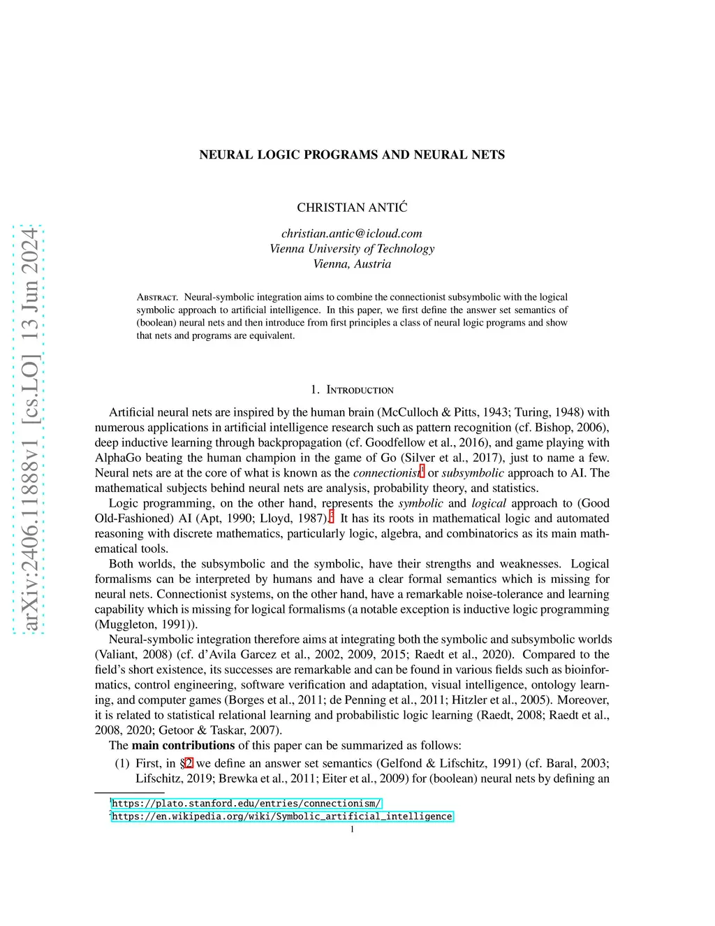 Neural-symbolic integration aims to combine the connectionist subsymbolic with the logical symbolic approach to artificial intelligence. In this paper, we first define the answer set semantics of (boolean) neural nets and then introduce from first principles a class of neural logic programs and show that nets and programs are equivalent.