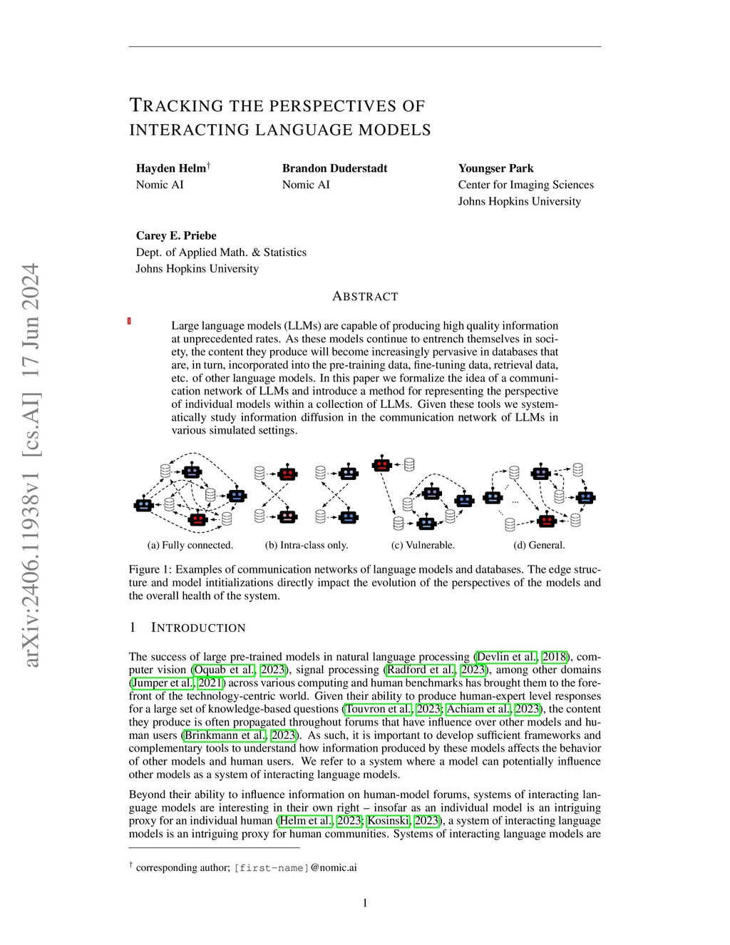 Large language models (LLMs) are capable of producing high quality information at unprecedented rates. As these models continue to entrench themselves in society, the content they produce will become increasingly pervasive in databases that are, in turn, incorporated into the pre-training data, fine-tuning data, retrieval data, etc. of other language models. In this paper we formalize the idea of a communication network of LLMs and introduce a method for representing the perspective of individual models within a collection of LLMs. Given these tools we systematically study information diffusion in the communication network of LLMs in various simulated settings.