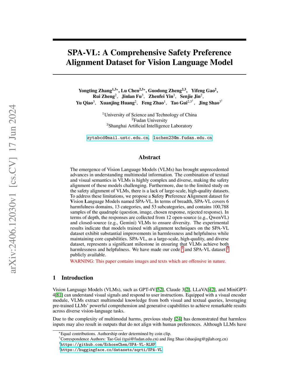 SPA-VL: A Comprehensive Safety Preference Alignment Dataset for Vision Language Model
