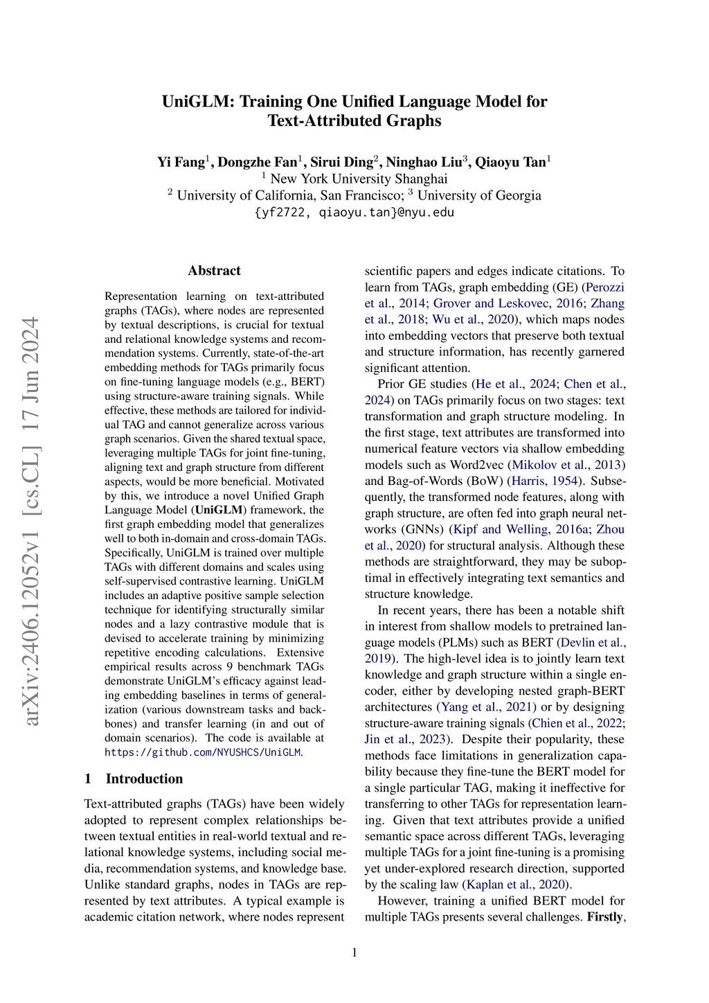 UniGLM: Training One Unified Language Model for Text-Attributed Graphs