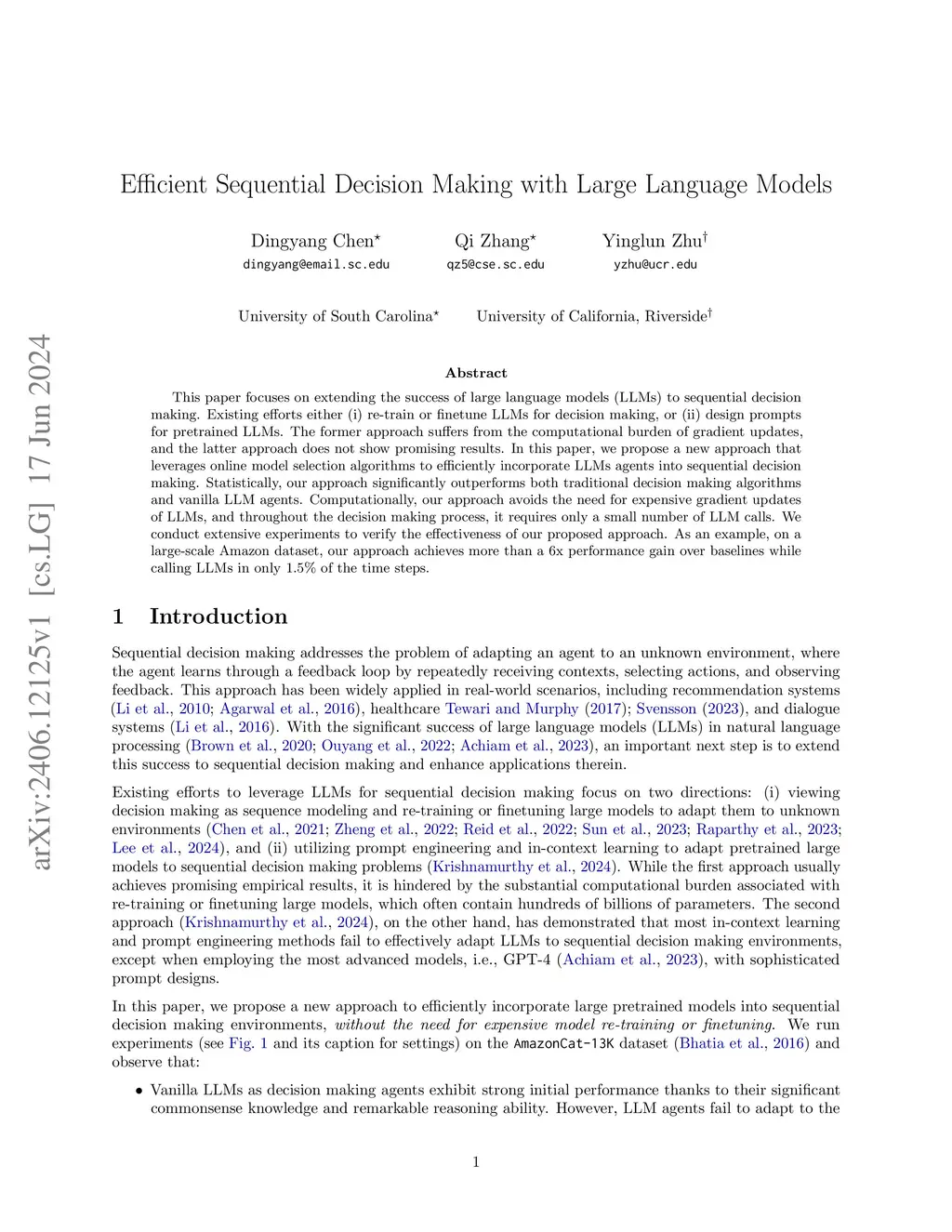 Efficient Sequential Decision Making with Large Language Models