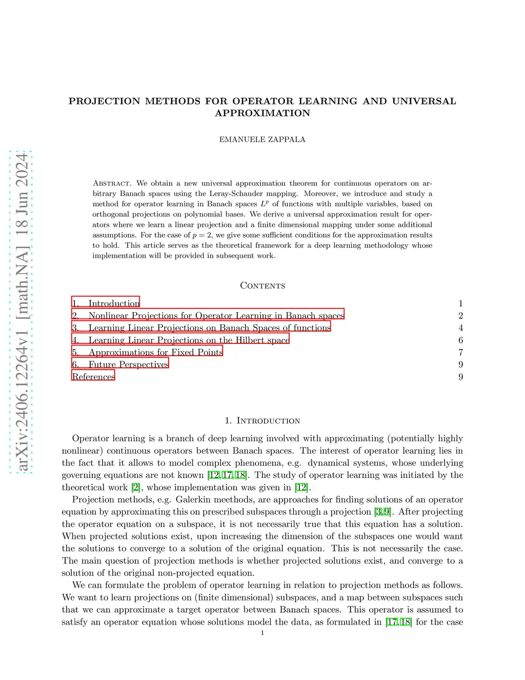 We obtain a new universal approximation theorem for continuous (possibly nonlinear) operators on arbitrary Banach spaces using the Leray-Schauder mapping. Moreover, we introduce and study a method for operator learning in Banach spaces of functions with multiple variables, based on orthogonal projections on polynomial bases. We derive a universal approximation result for operators where we learn a linear projection and a finite dimensional mapping under some additional assumptions. For the case of , we give some sufficient conditions for the approximation results to hold. This article serves as the theoretical framework for a deep learning methodology in operator learning.