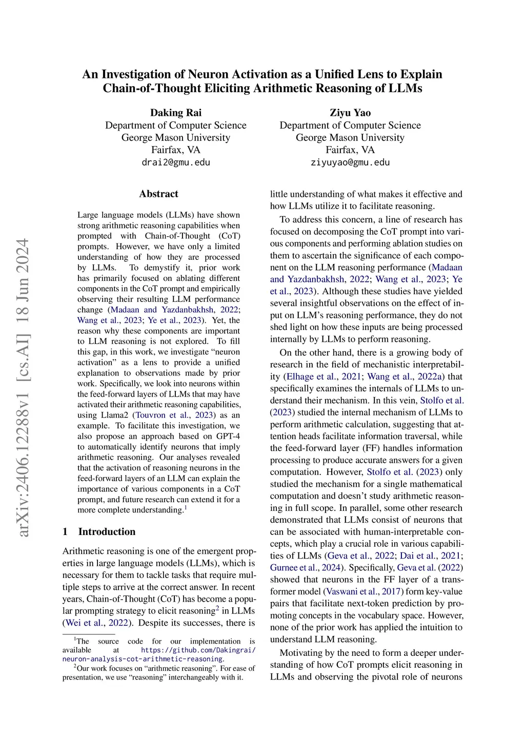Chain-of-Thought Eliciting Arithmetic Reasoning of LLMs