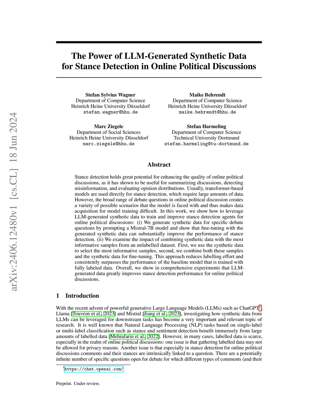 The Power of LLM-Generated Synthetic Data for Stance Detection in Online Political Discussions