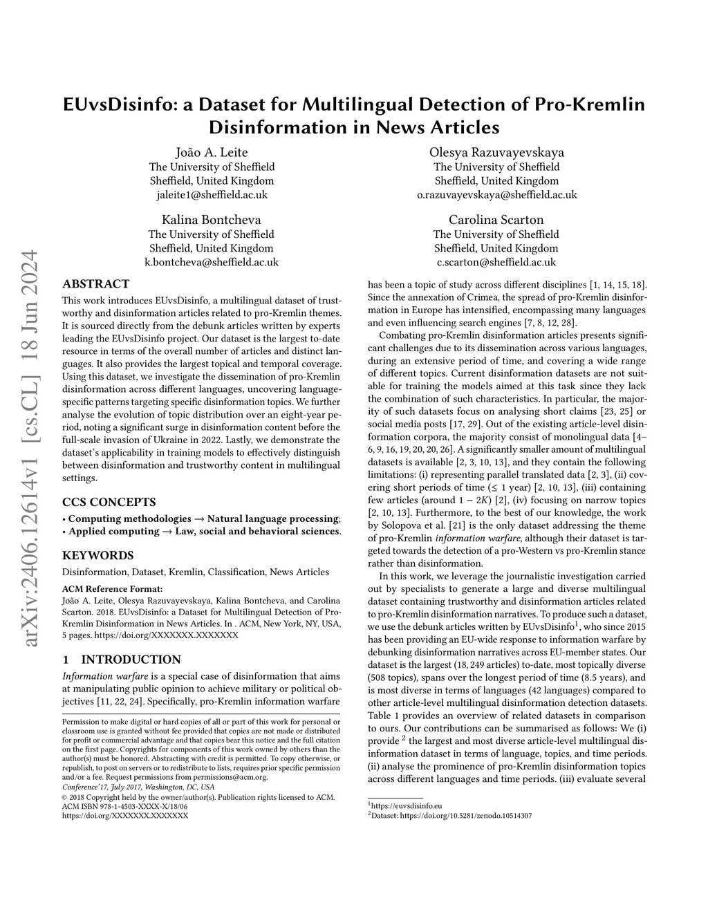EUvsDisinfo: A Dataset for Multilingual Detection of Pro-Kremlin