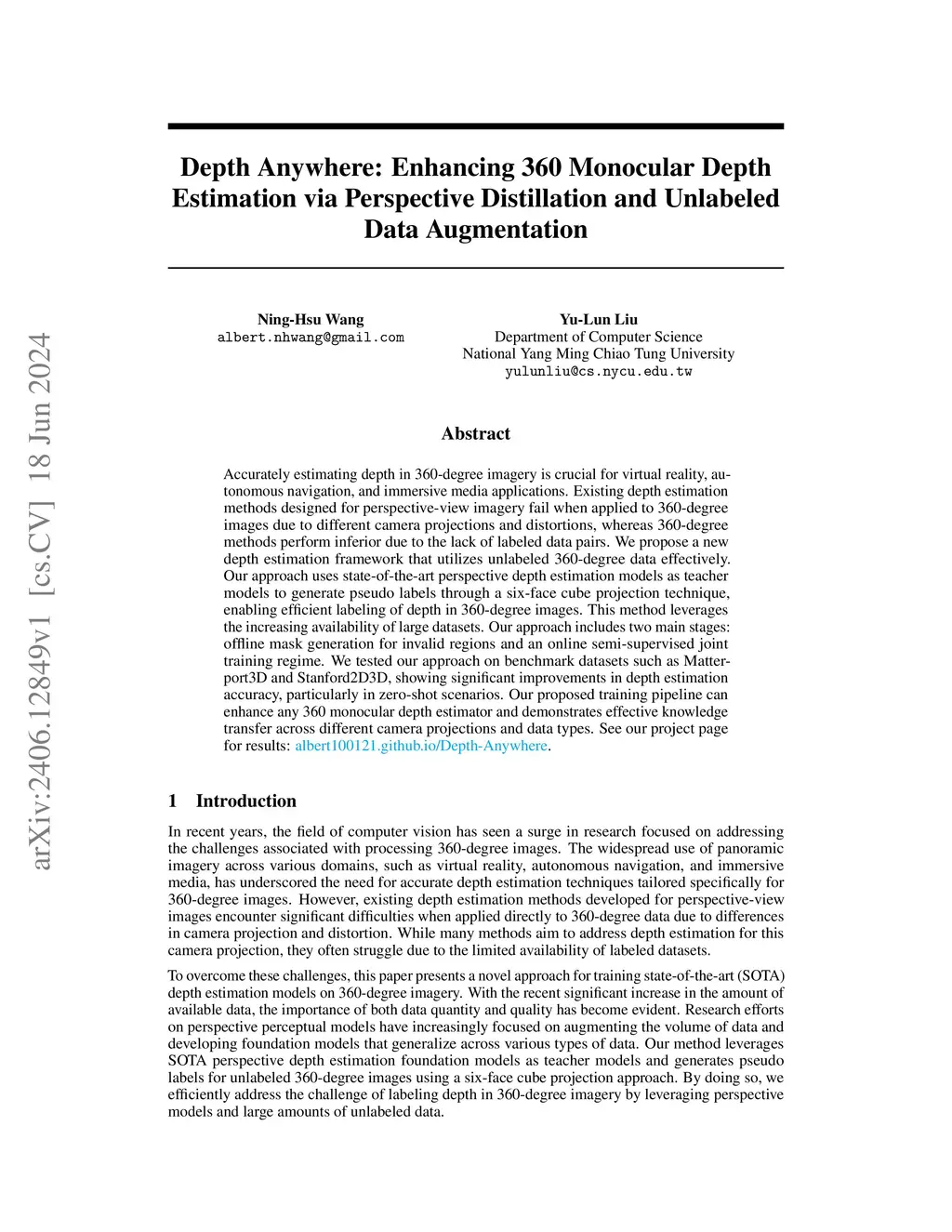 Depth Anywhere: Enhancing 360 Monocular Depth Estimation via Perspective