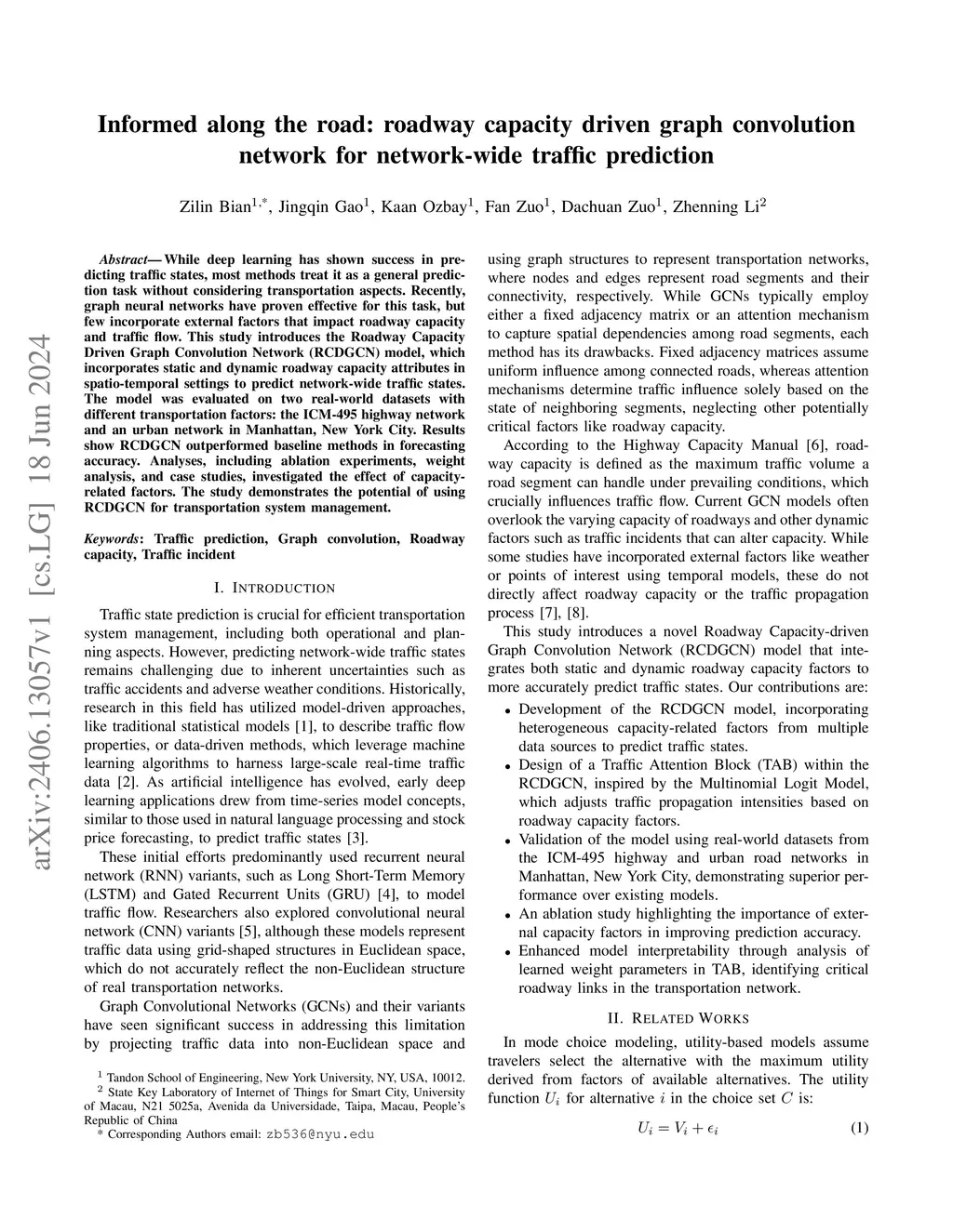 Informed along the road: roadway capacity driven graph convolution