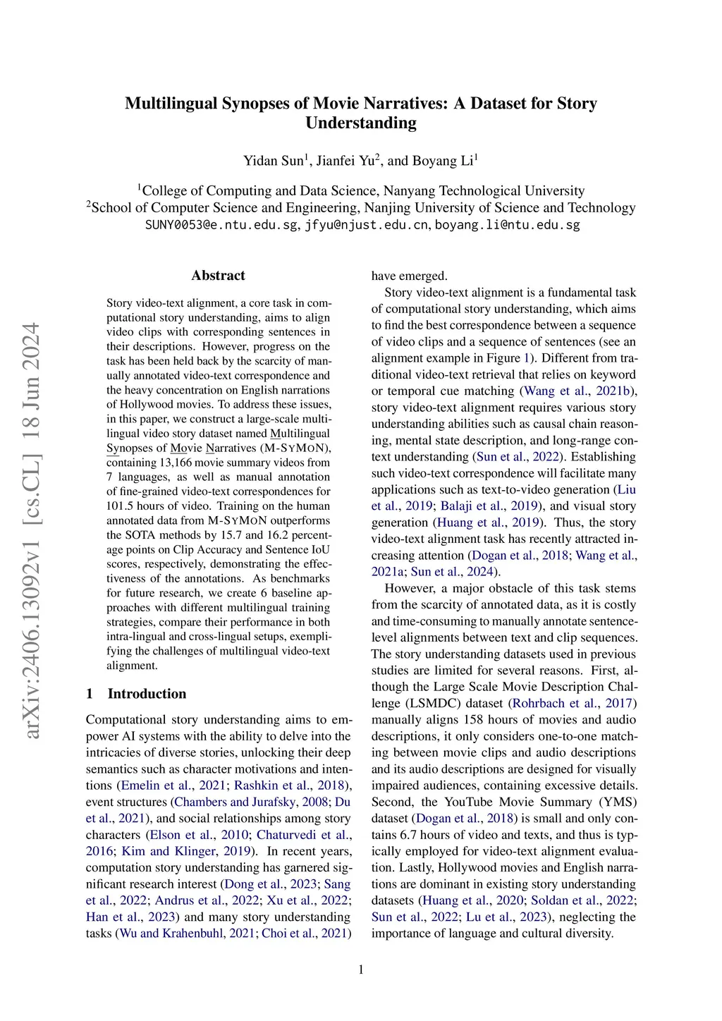 Multilingual Synopses of Movie Narratives: A Dataset for Story