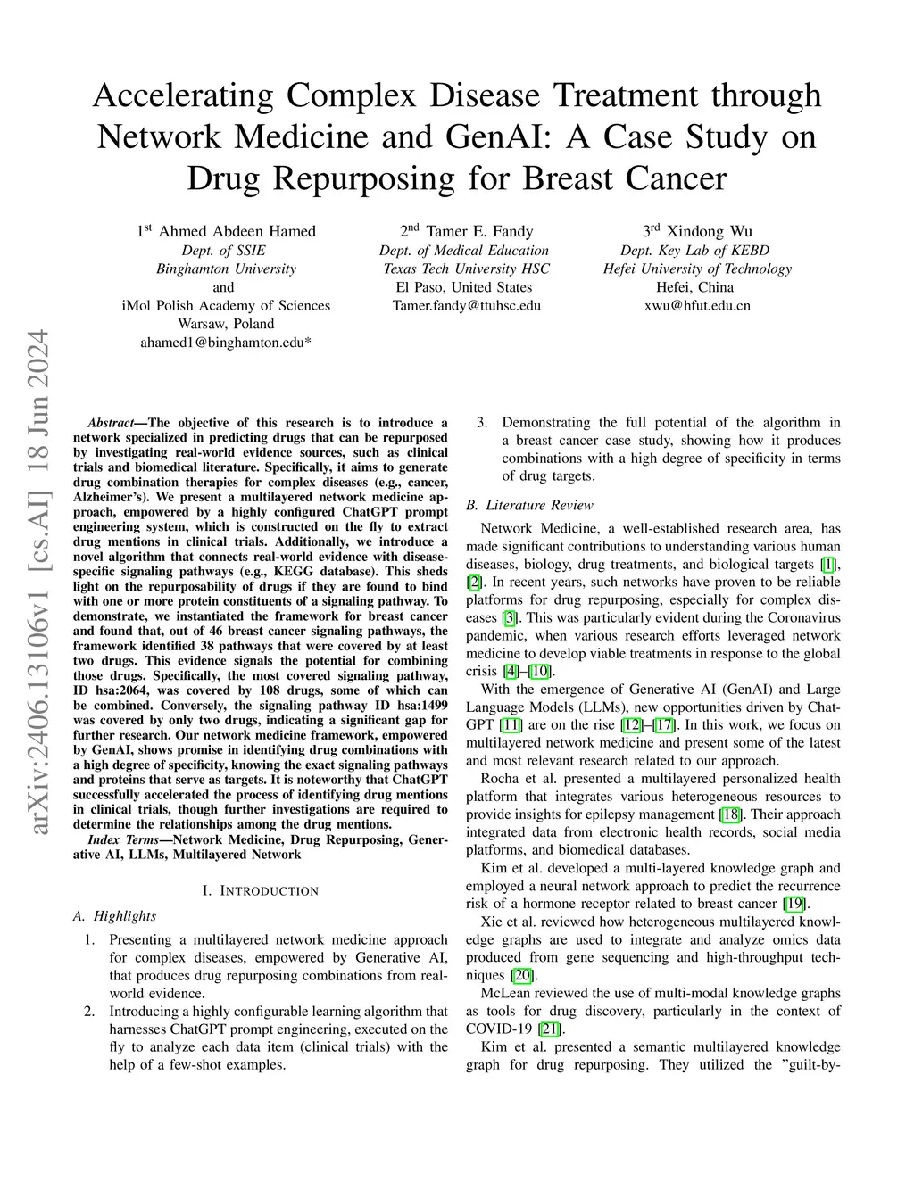 The objective of this research is to introduce a network specialized in predicting drugs that can be repurposed by investigating real-world evidence sources, such as clinical trials and biomedical literature. Specifically, it aims to generate drug combination therapies for complex diseases (e.g., cancer, Alzheimer's). We present a multilayered network medicine approach, empowered by a highly configured ChatGPT prompt engineering system, which is constructed on the fly to extract drug mentions in clinical trials. Additionally, we introduce a novel algorithm that connects real-world evidence with disease-specific signaling pathways (e.g., KEGG database). This sheds light on the repurposability of drugs if they are found to bind with one or more protein constituents of a signaling pathway. To demonstrate, we instantiated the framework for breast cancer and found that, out of 46 breast cancer signaling pathways, the framework identified 38 pathways that were covered by at least two drugs. This evidence signals the potential for combining those drugs. Specifically, the most covered signaling pathway, ID hsa:2064, was covered by 108 drugs, some of which can be combined. Conversely, the signaling pathway ID hsa:1499 was covered by only two drugs, indicating a significant gap for further research. Our network medicine framework, empowered by GenAI, shows promise in identifying drug combinations with a high degree of specificity, knowing the exact signaling pathways and proteins that serve as targets. It is noteworthy that ChatGPT successfully accelerated the process of identifying drug mentions in clinical trials, though further investigations are required to determine the relationships among the drug mentions.