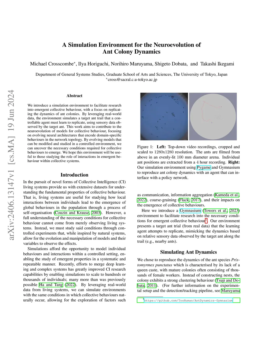 A Simulation Environment for the Neuroevolution of Ant Colony Dynamics