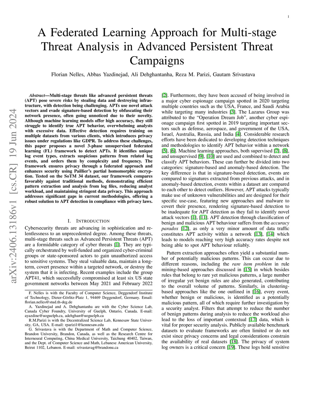 A Federated Learning Approach for Multi-stage Threat Analysis in