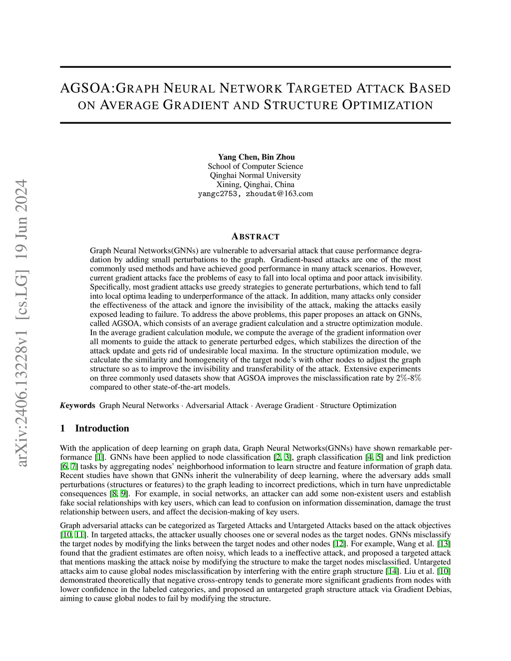 AGSOA:Graph Neural Network Targeted Attack Based on Average Gradient and